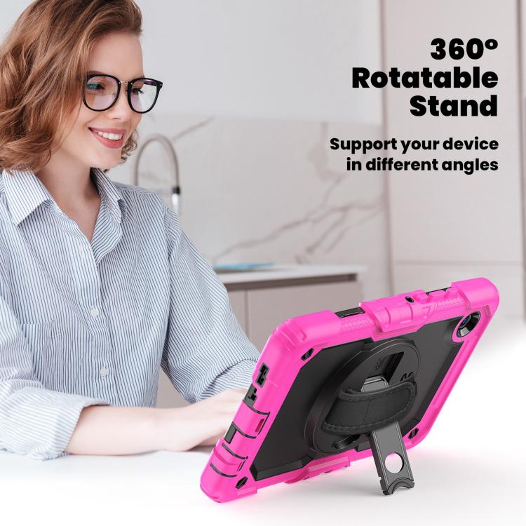 For Samsung Galaxy Tab A11 / A9 Silicone Hybrid PC Tablet Case with Shoulder Strap(Rose Red)