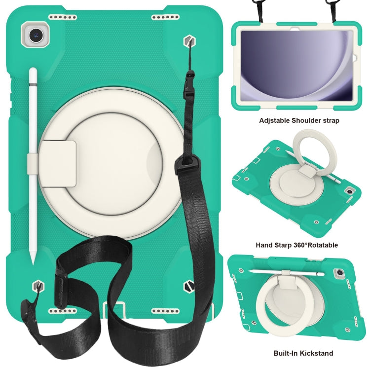 For Samsung Galaxy Tab A11+ / A9+ Silicone Hybrid PC Tablet Case with Shoulders Strap(Mint Green)