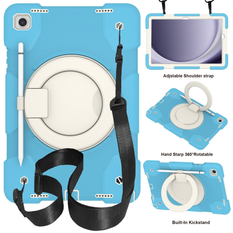 For Samsung Galaxy Tab A11+ / A9+ Silicone Hybrid PC Tablet Case with Shoulders Strap(Sky Blue)