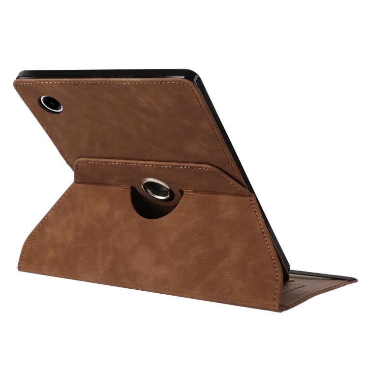 For Samsung Galaxy Tab A11 / A9 Smile Embossed Rotation Holder Leather Tablet Case(Brown)