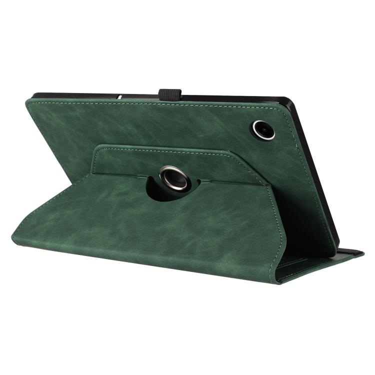 For Samsung Galaxy Tab A11 / A9 Smile Embossed Rotation Holder Leather Tablet Case(Green)
