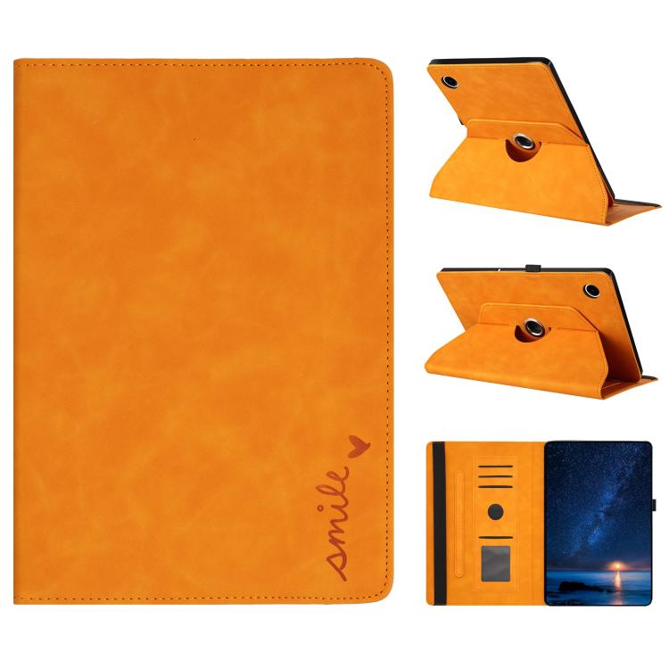 For Samsung Galaxy Tab A11 / A9 Smile Embossed Rotation Holder Leather Tablet Case(Khaki)