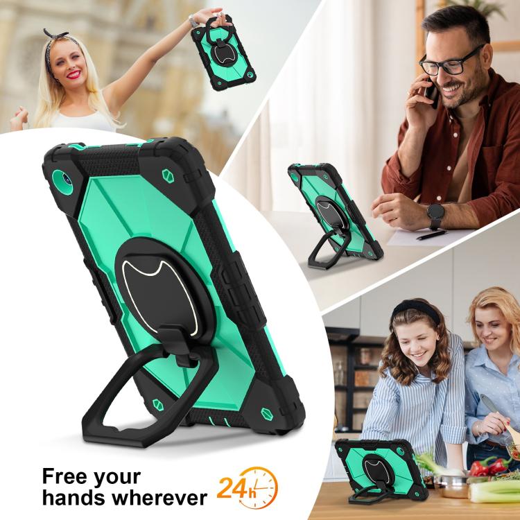 For Samsung Galaxy Tab A11+ Contrast Color Robot Silicone Hybrid PC Tablet Case(Black Mint Green)