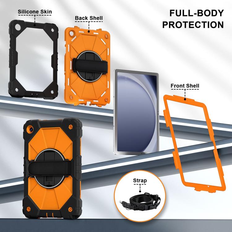 For Samsung Galaxy Tab A11+ Contrast Color Robot Silicone Hybrid PC Tablet Case(Black Orange)