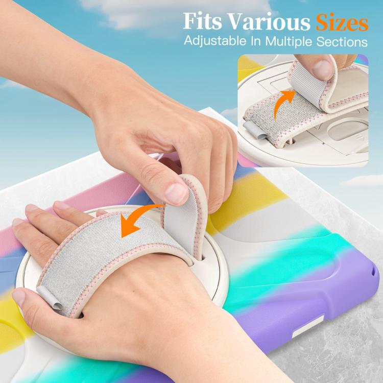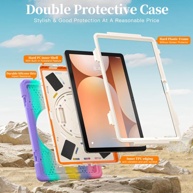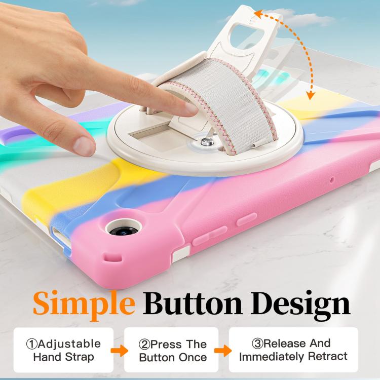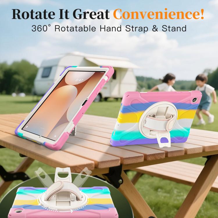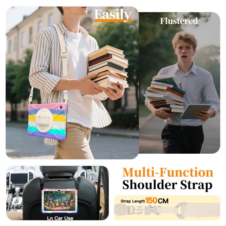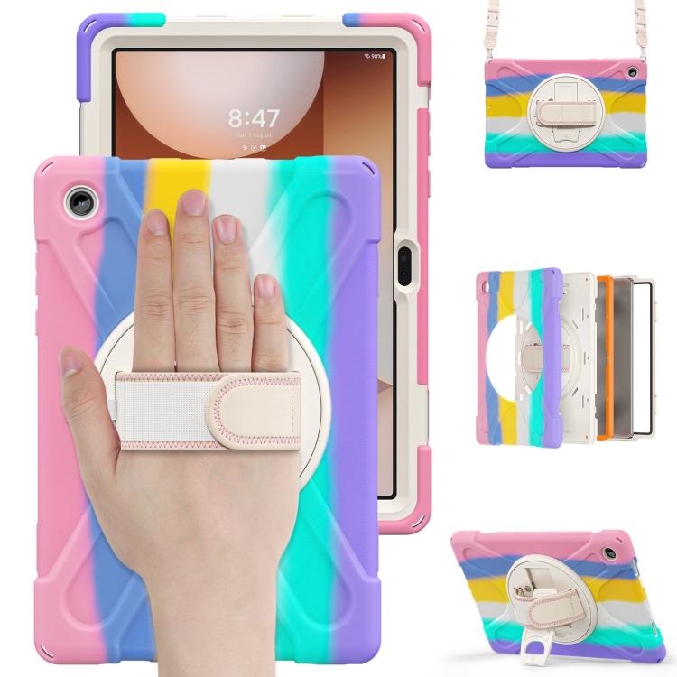 For Samsung Galaxy Tab A11+ Rotatable Holder Silicone Hybrid PC Tablet Case with Shoulder Strap(Colorful Pink)