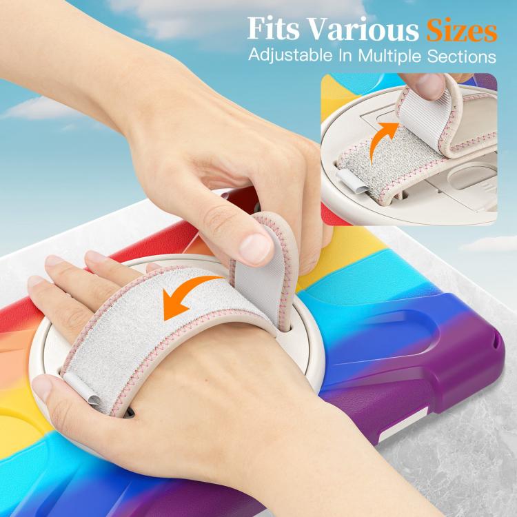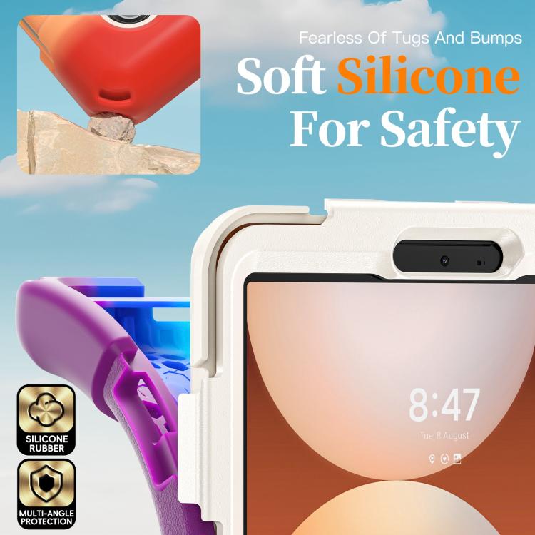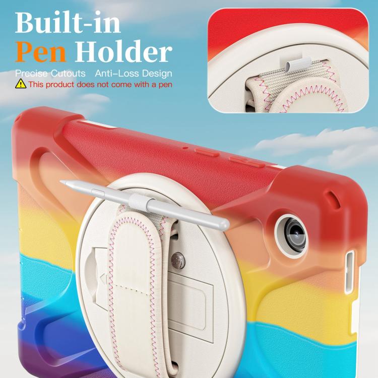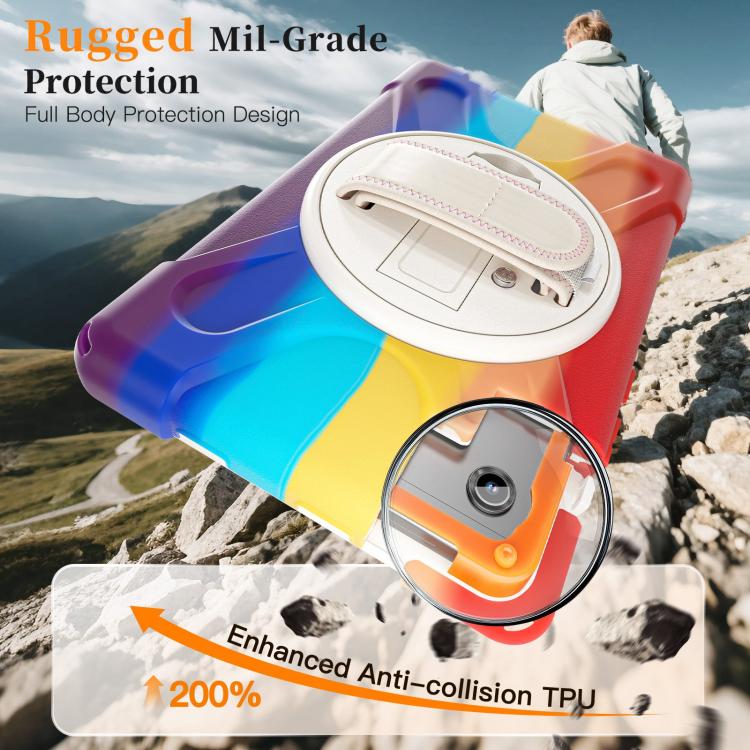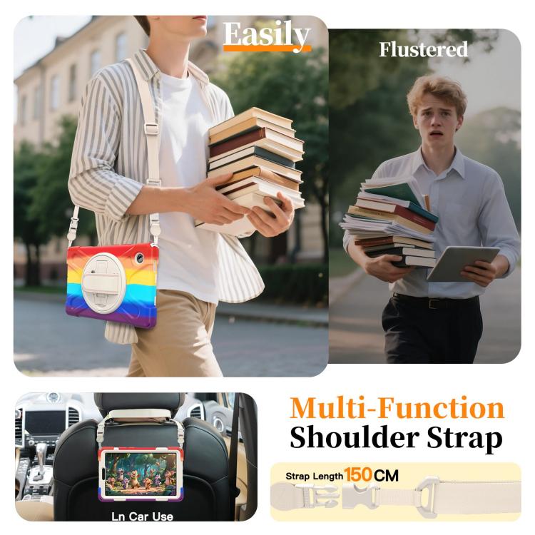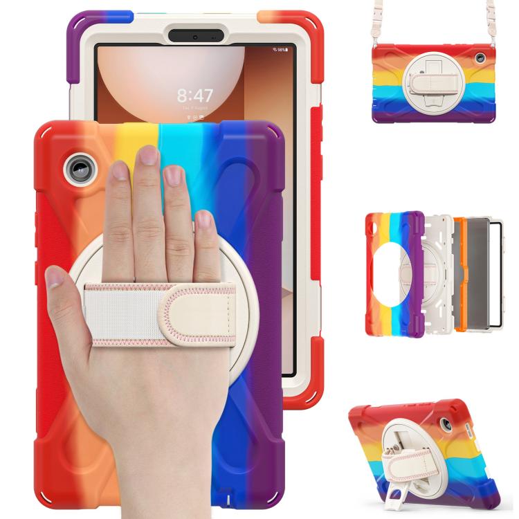 For Samsung Galaxy Tab A11 Rotatable Holder Silicone Hybrid PC Tablet Case with Shoulder Strap(Colorful Red)