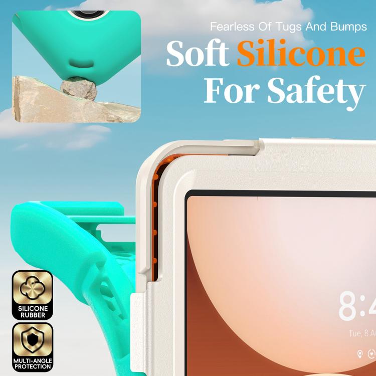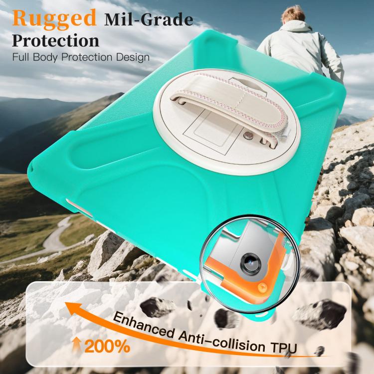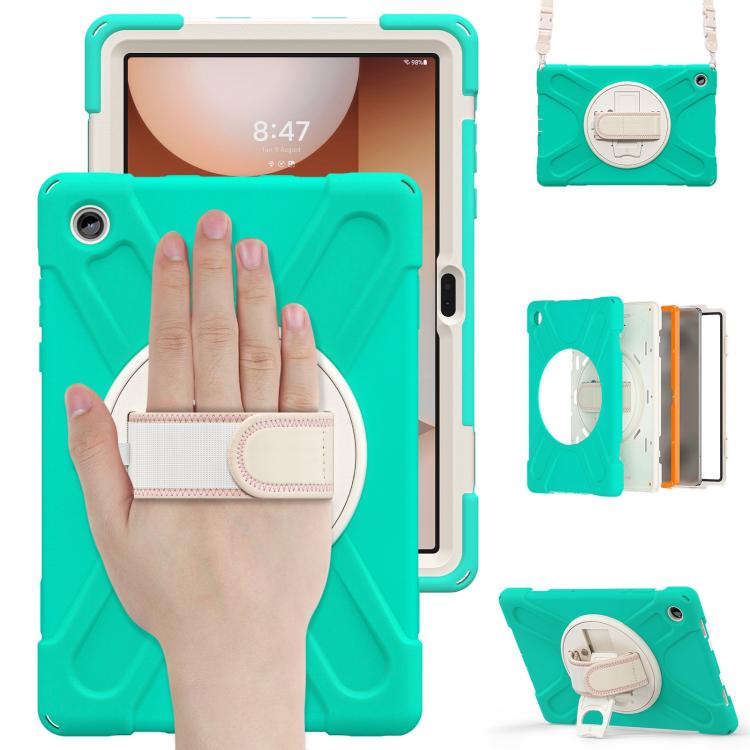 For Samsung Galaxy Tab A11+ Rotatable Holder Silicone Hybrid PC Tablet Case with Shoulder Strap(Mint Green)