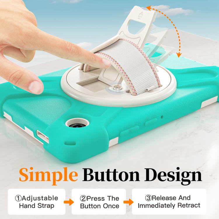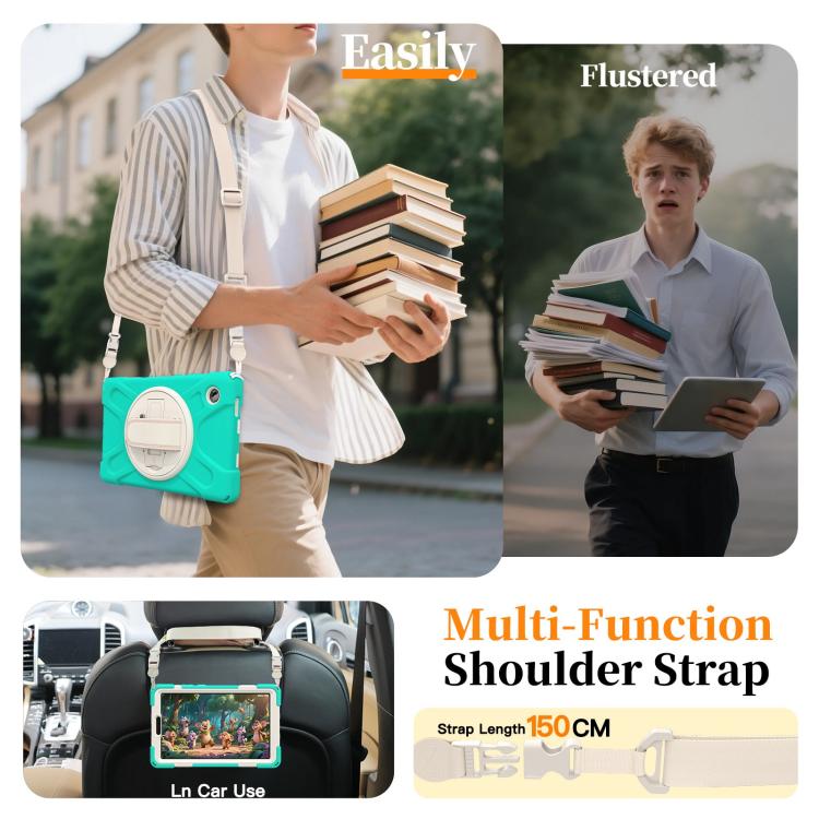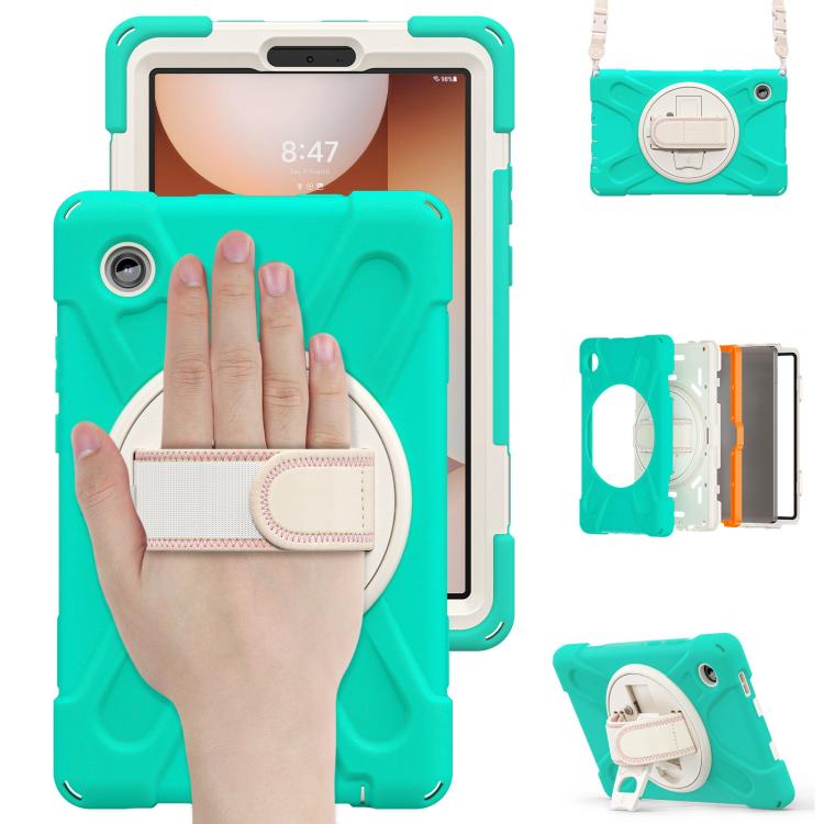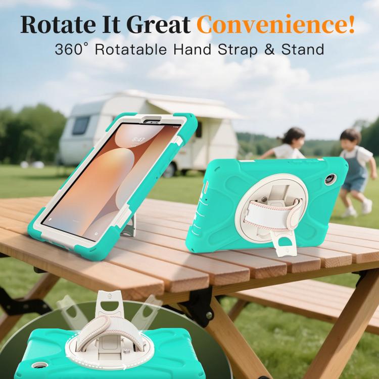 For Samsung Galaxy Tab A11 Rotatable Holder Silicone Hybrid PC Tablet Case with Shoulder Strap(Mint Green)