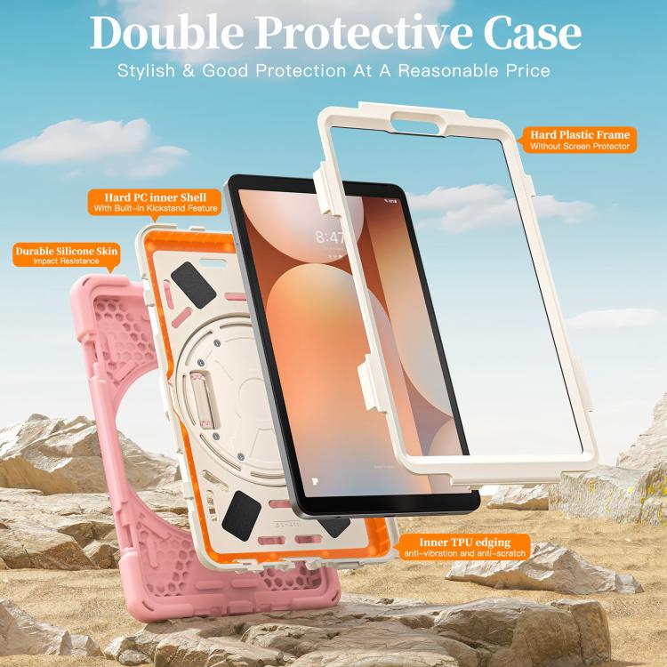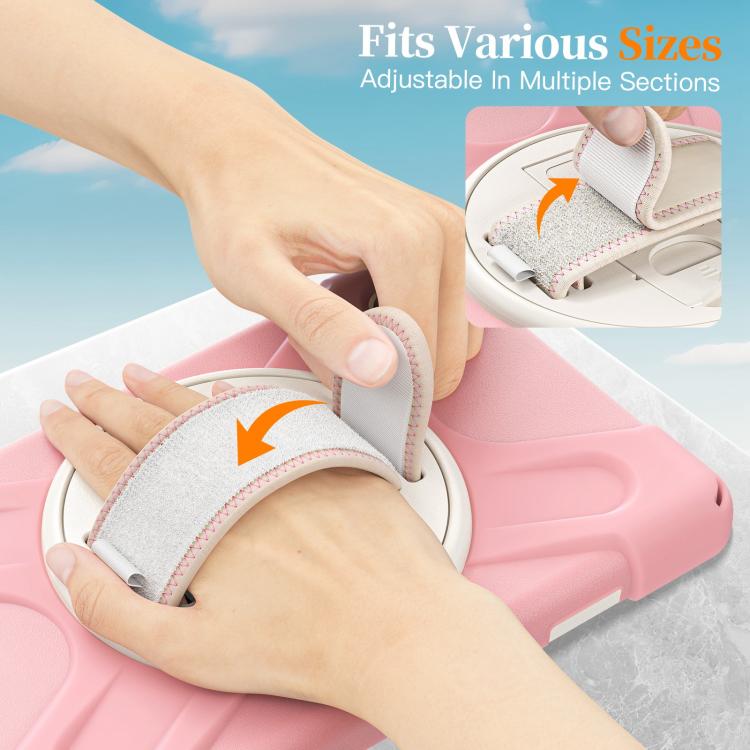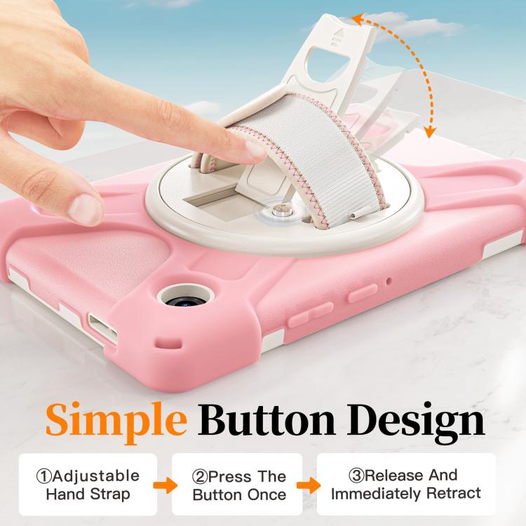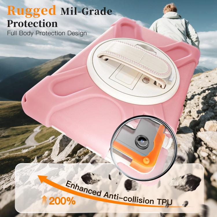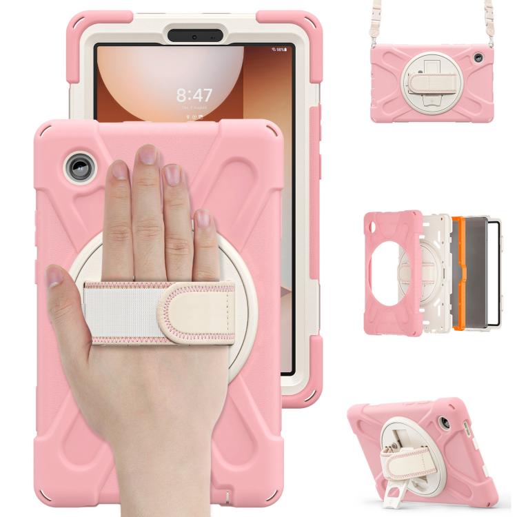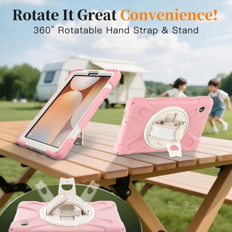 For Samsung Galaxy Tab A11 Rotatable Holder Silicone Hybrid PC Tablet Case with Shoulder Strap(Pink)