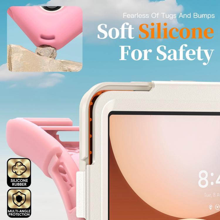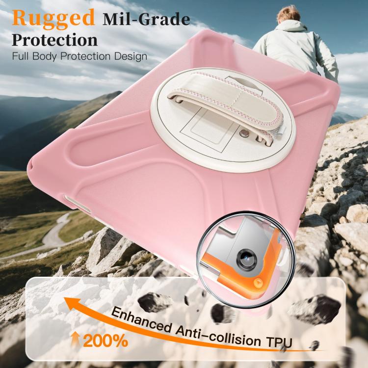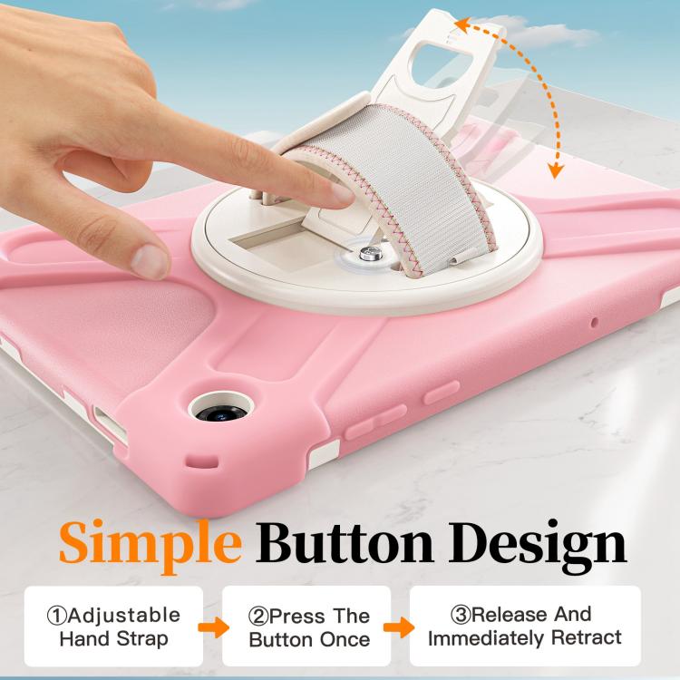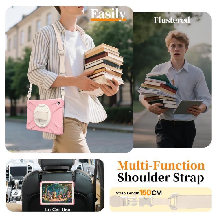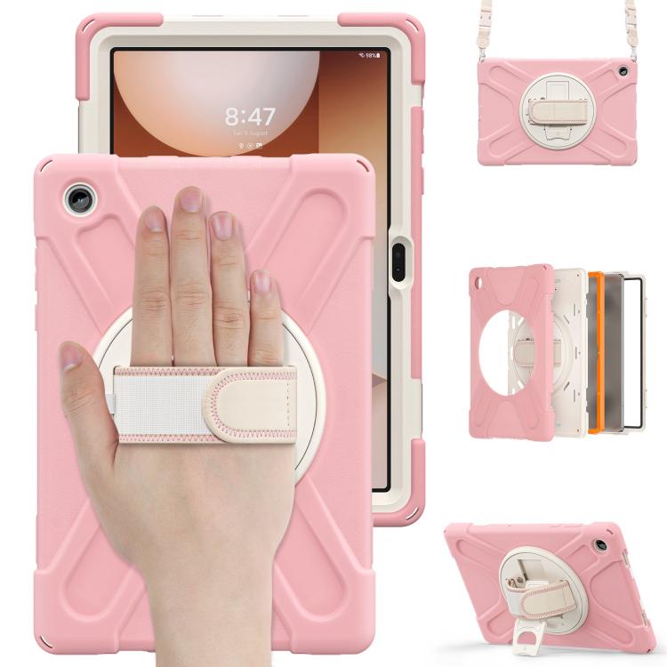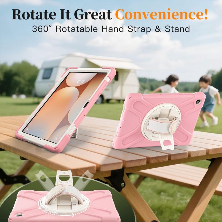 For Samsung Galaxy Tab A11+ Rotatable Holder Silicone Hybrid PC Tablet Case with Shoulder Strap(Pink)