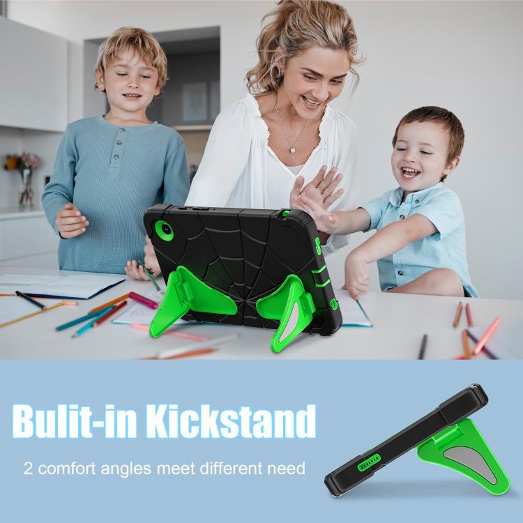 For Samsung Galaxy Tab A11 Spider Silicone Hybrid PC Shockproof Tablet Case(Black Green)