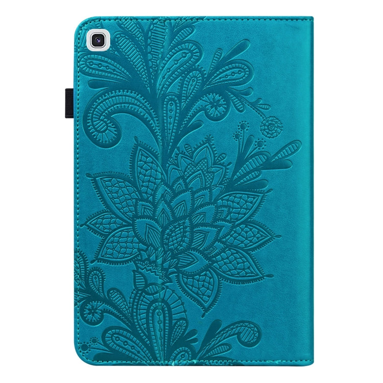 For Samsung Galaxy Tab A7 10.4 2020 SM-T500/SM-T505 Lace Flower Embossing Pattern Horizontal Flip Leather Case with Holder & Card Slots & Wallet & Photo Frame(Blue)