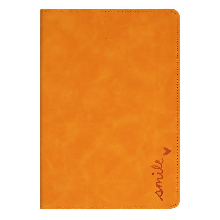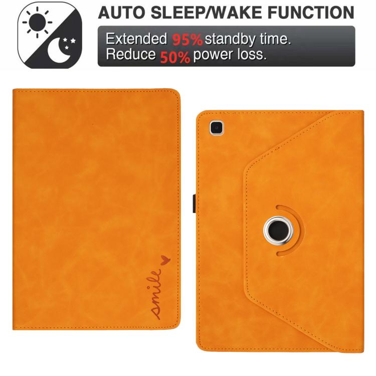 For Samsung Galaxy Tab A7 2020 Smile Embossed Rotation Holder Leather Smart Tablet Case(Khaki)