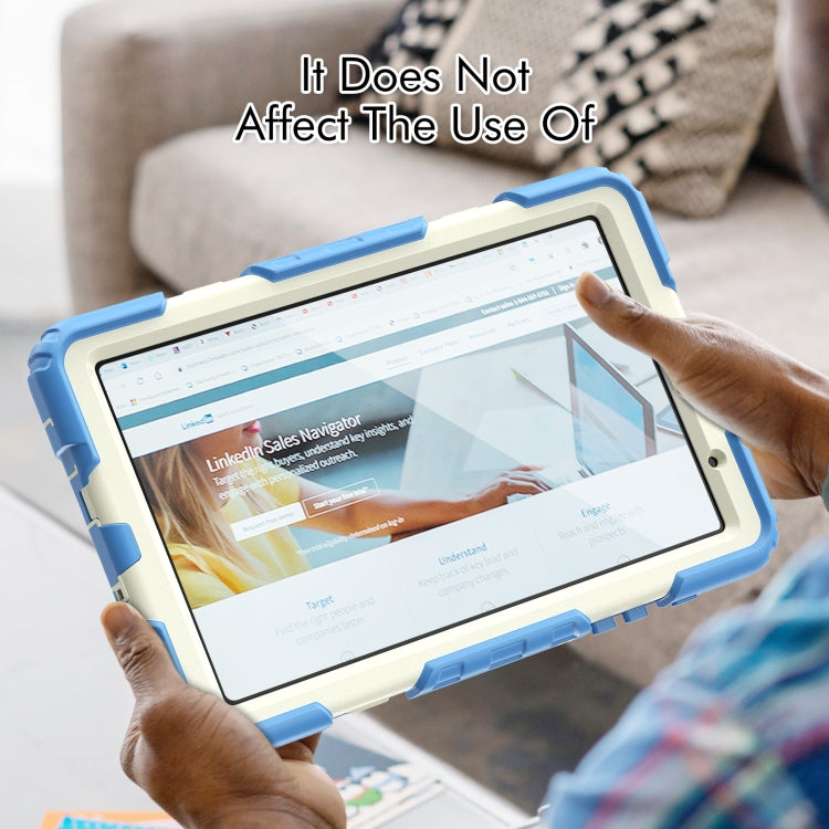 For Samsung Galaxy Tab A7 Lite T220 Silicone Hybrid PC Tablet Case with Shoulder Strap(Beige + Cyan-blue)