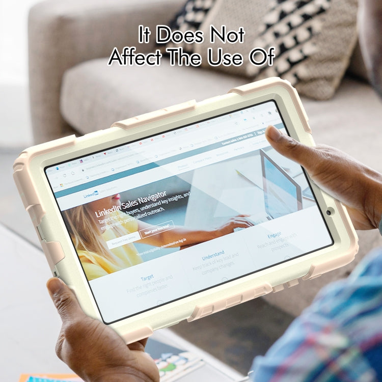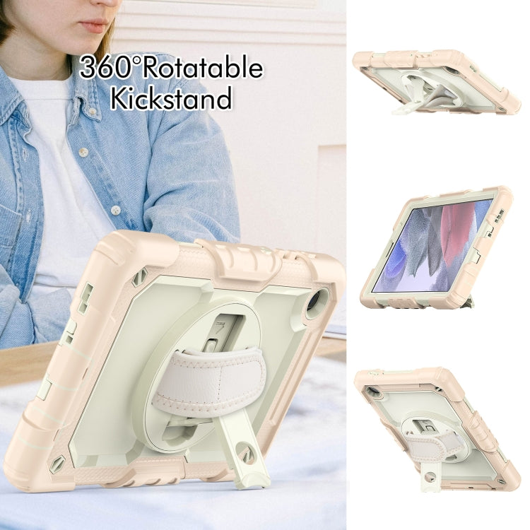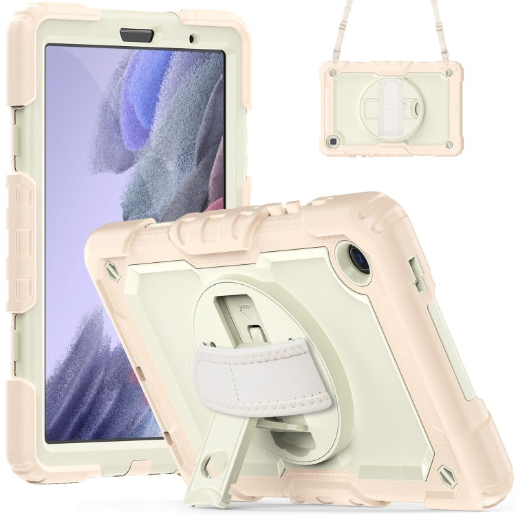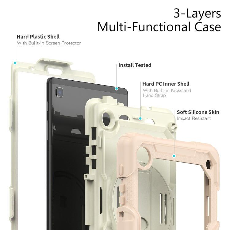 For Samsung Galaxy Tab A7 Lite T220 Silicone Hybrid PC Tablet Case with Shoulder Strap(Beige + Rose Gold)