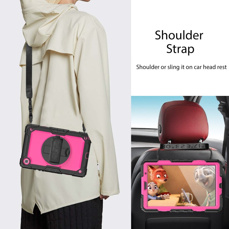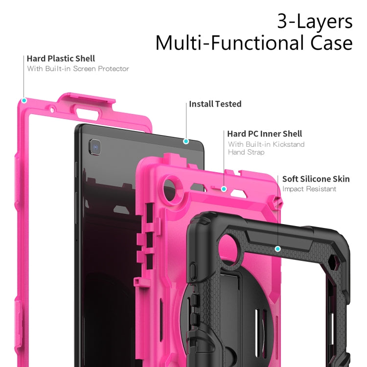 For Samsung Galaxy Tab A7 Lite T220 Silicone Hybrid PC Tablet Case with Shoulder Strap(Rose Red + Black)