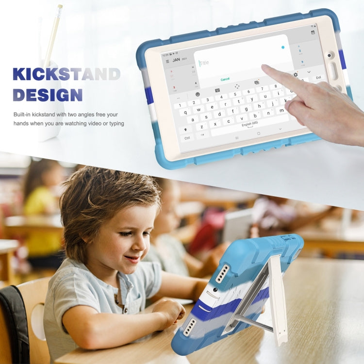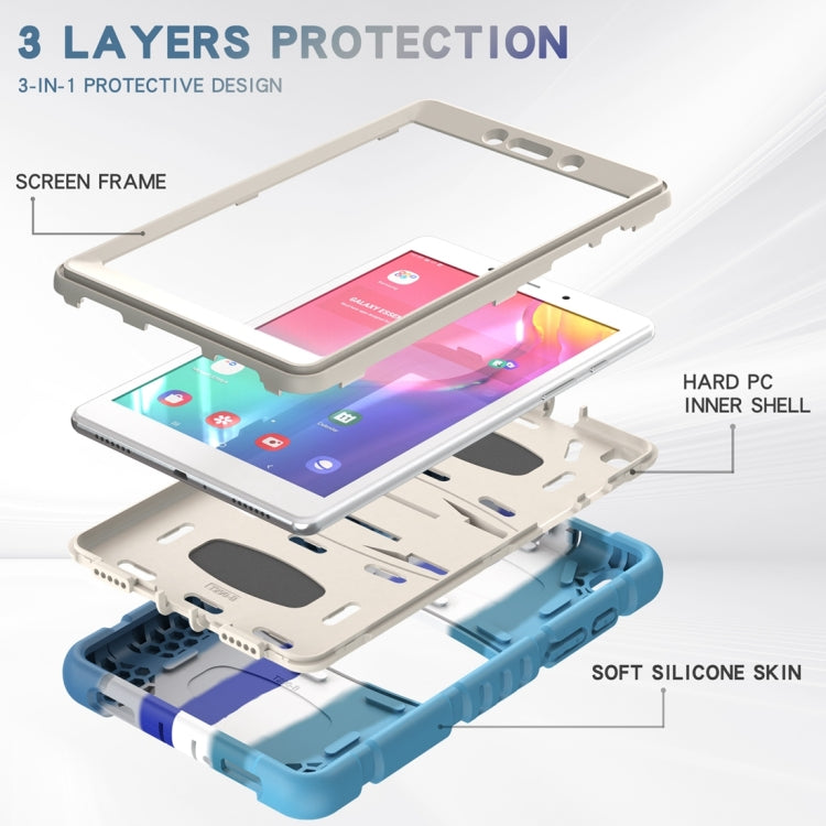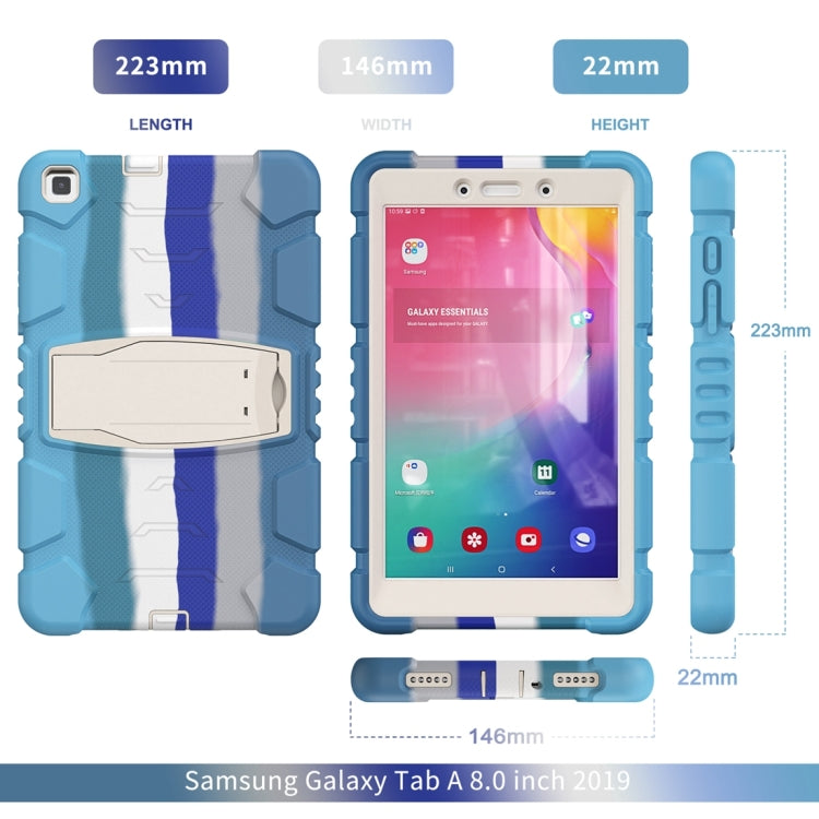 For Samsung Galaxy Tab A8.0 2019 T290 3-Layer Protection Screen Frame + PC + Silicone Shockproof Combination Case with Holder(Colorful Blue)