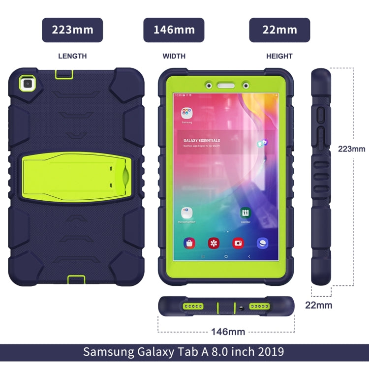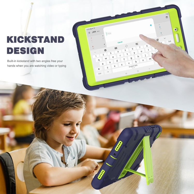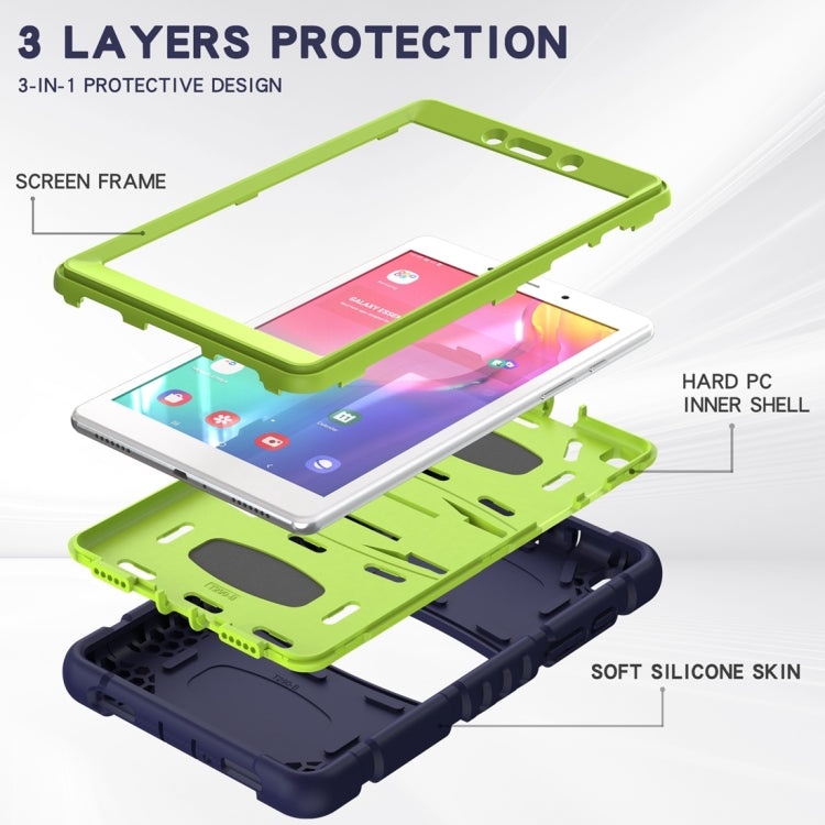 For Samsung Galaxy Tab A8.0 2019 T290 3-Layer Protection Screen Frame + PC + Silicone Shockproof Combination Case with Holder(NavyBlue+Lime)