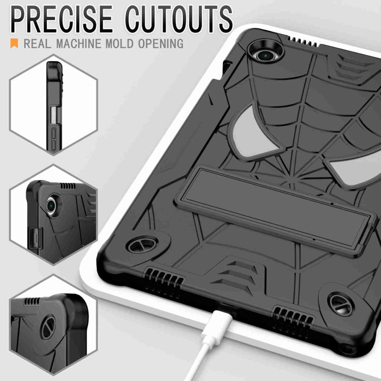 For Samsung Galaxy Tab A8 10.5 2021 Spider Texture Silicone Hybrid PC Tablet Case with Shoulder Strap(Black)