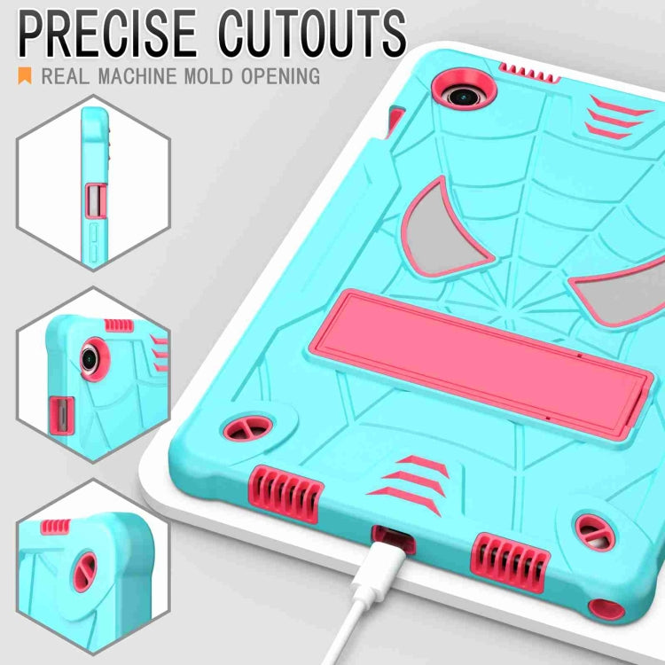 For Samsung Galaxy Tab A8 10.5 2021 Spider Texture Silicone Hybrid PC Tablet Case with Shoulder Strap(Mint Green + Rose Red)