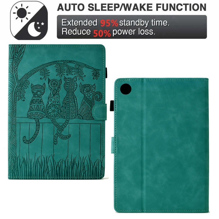 For Samsung Galaxy Tab A8 10.5 2021 X205 Cats Embossed Leather Smart Tablet Case(Light Blue)