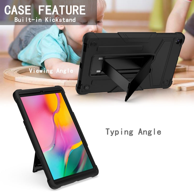 For Samsung Galaxy Tab A8.4 (2020) T307 T-shaped Bracket Contrast Color Shockproof PC + Silicone Flat Protective Case(Black+Black)