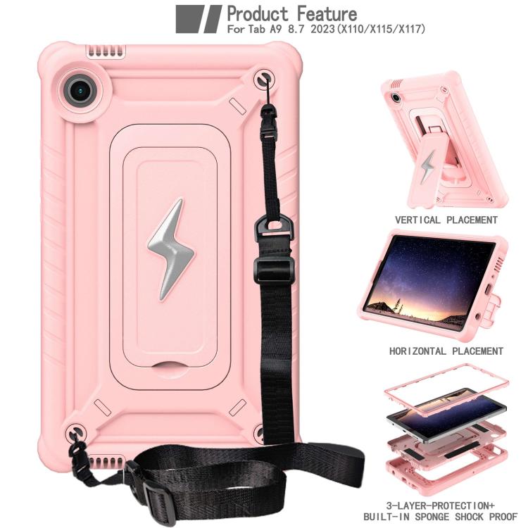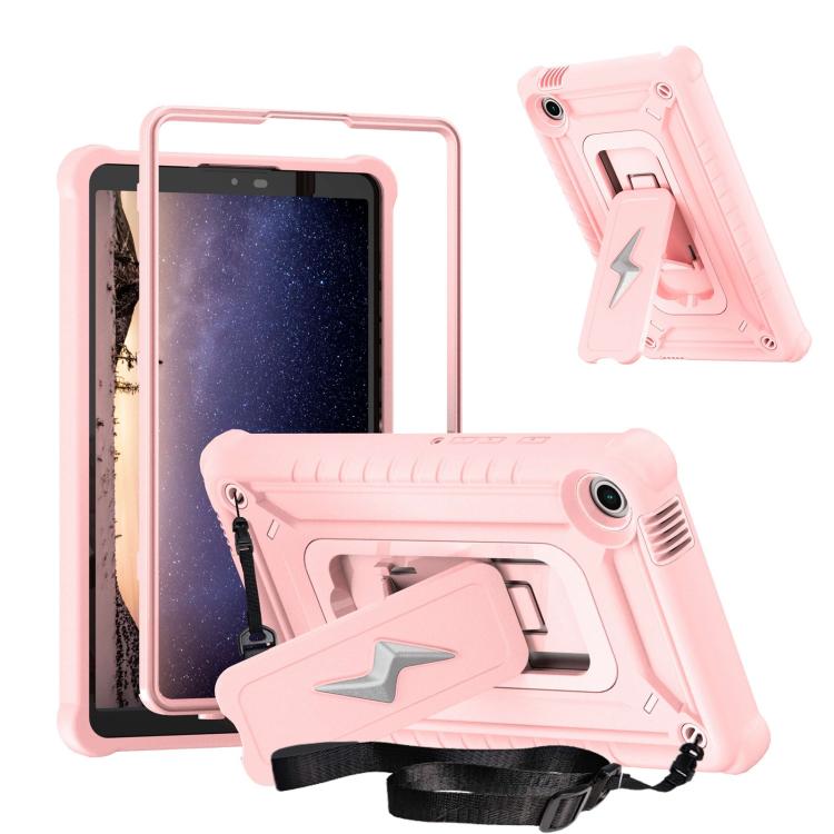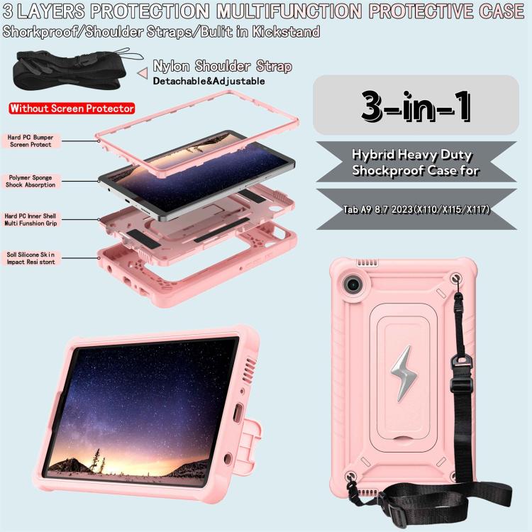 For Samsung Galaxy Tab A9 Armor Bolt Shape Holder Silicone Hybrid PC Tablet Case(Rose Gold)