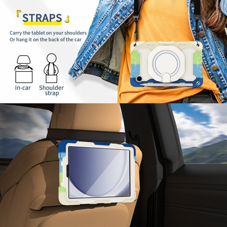 For Samsung Galaxy Tab A9 Armor Portable Rotating Ring Holder Silicone Tablet Case(Colorful Blue)
