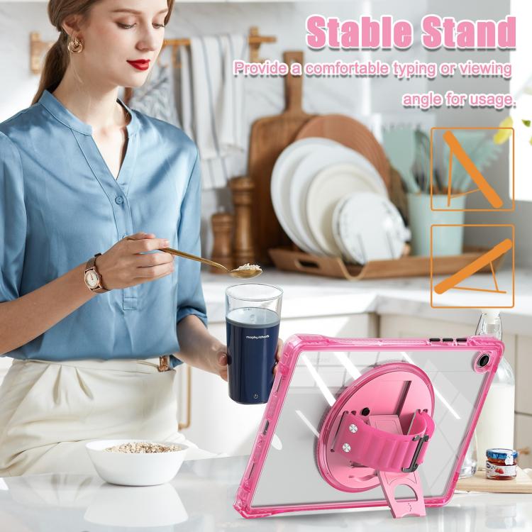 For Samsung Galaxy Tab A9+ Rotation Grip Holder TPU Hybrid Clear PC Tablet Case(Red Rose)