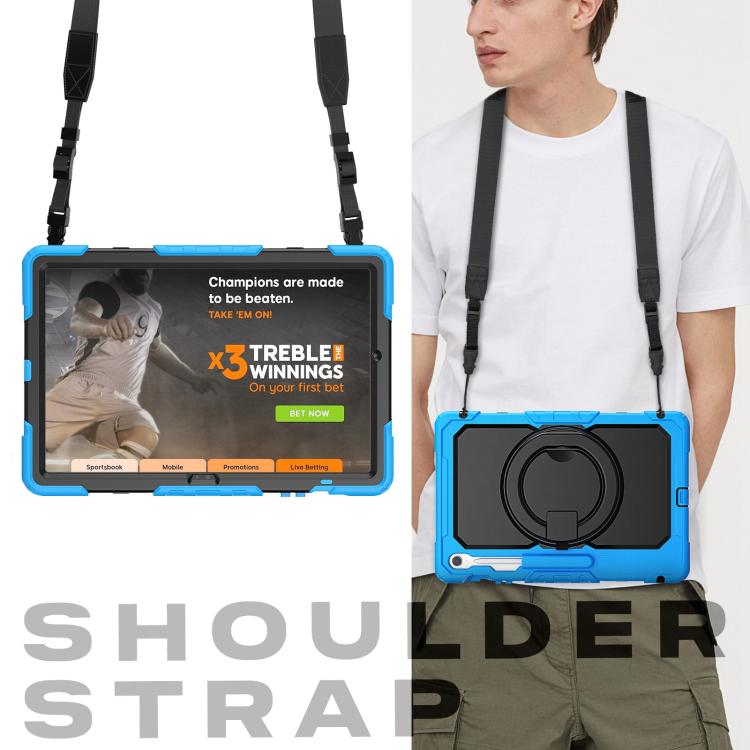 For Samsung Galaxy Tab S10 FE+ D Type Silicone Hybrid PC Tablet Case with Handle Holder(Light Blue)