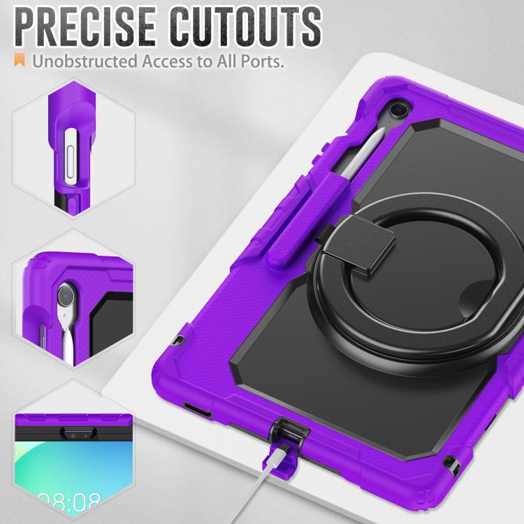 For Samsung Galaxy Tab S10 FE+ D Type Silicone Hybrid PC Tablet Case with Handle Holder(Purple)