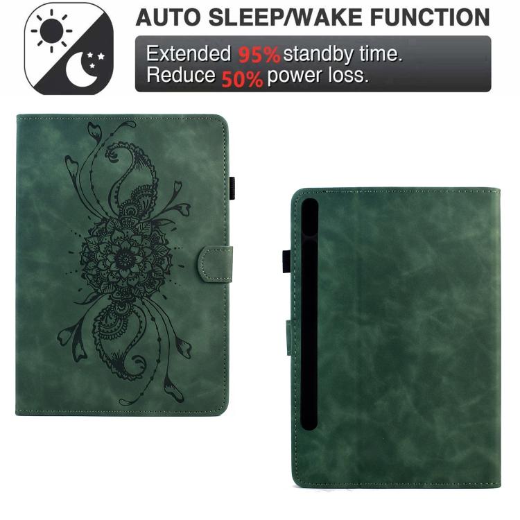 For Samsung Galaxy Tab S10 FE+ Mandala Embossed Smart Leather Tablet Case(Green)