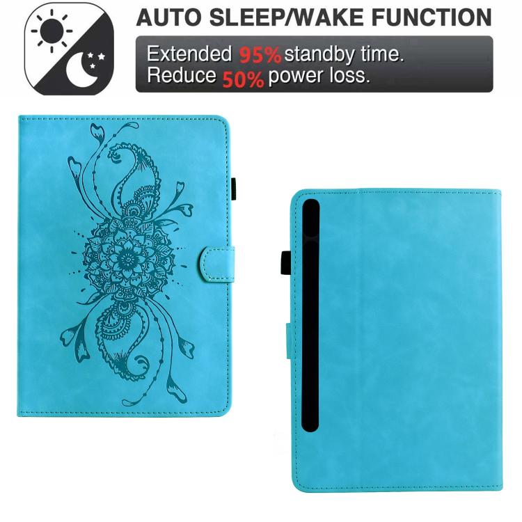 For Samsung Galaxy Tab S10 FE+ Mandala Embossed Smart Leather Tablet Case(Sky Blue)