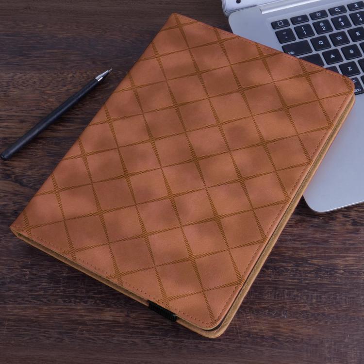 For Samsung Galaxy Tab S10 FE+ Rhombus Embossing Leather Tablet Case(Brown)