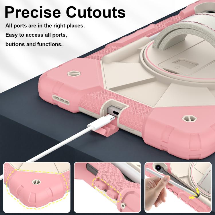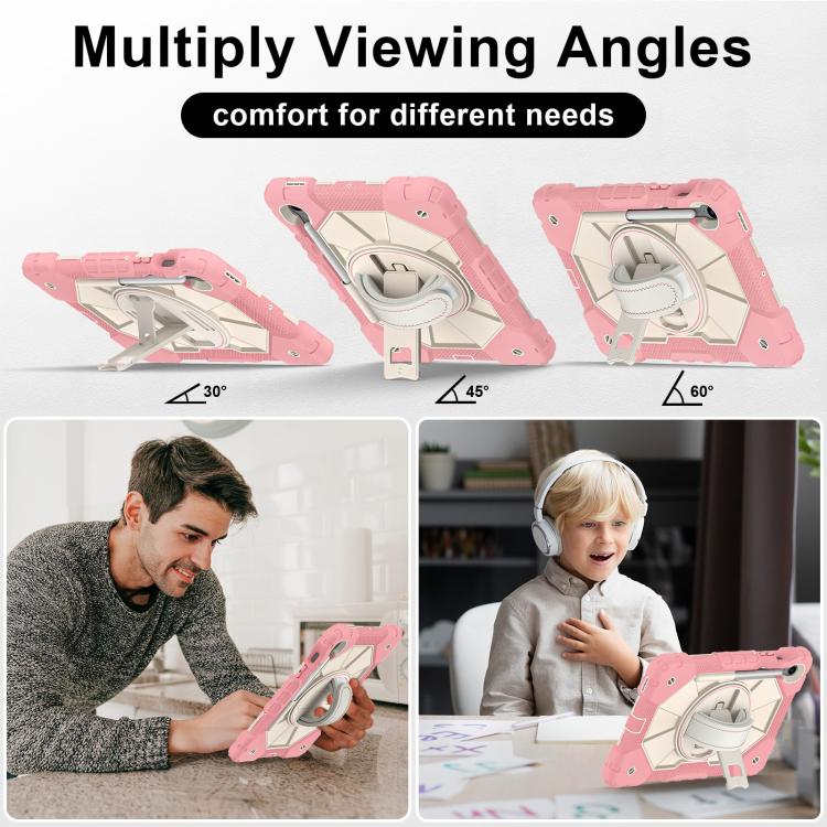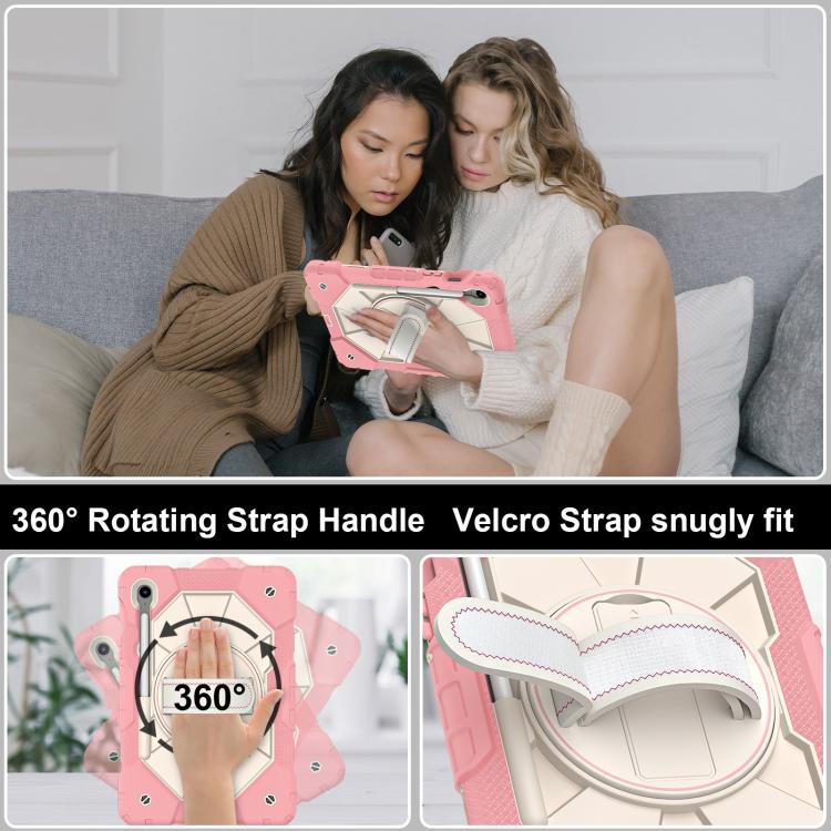 For Samsung Galaxy Tab S10 FE / S9 Contrast Color Robot Silicone Hybrid PC Tablet Case(Rose Gold Beige)