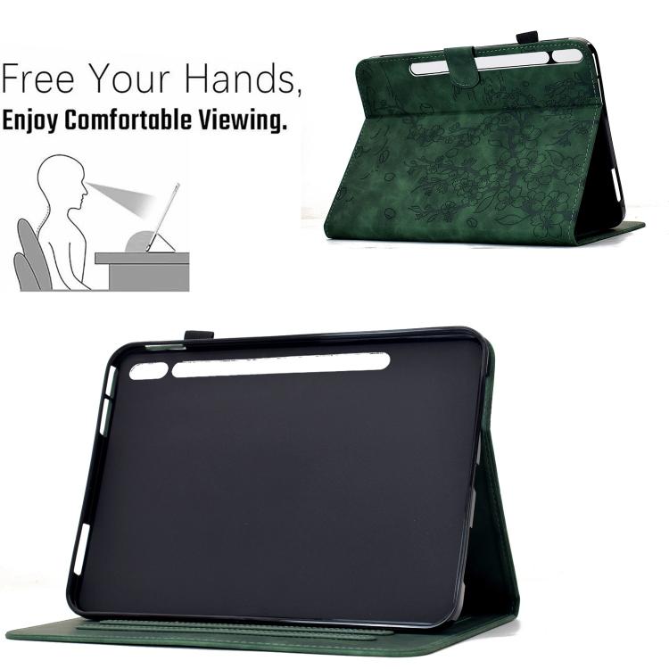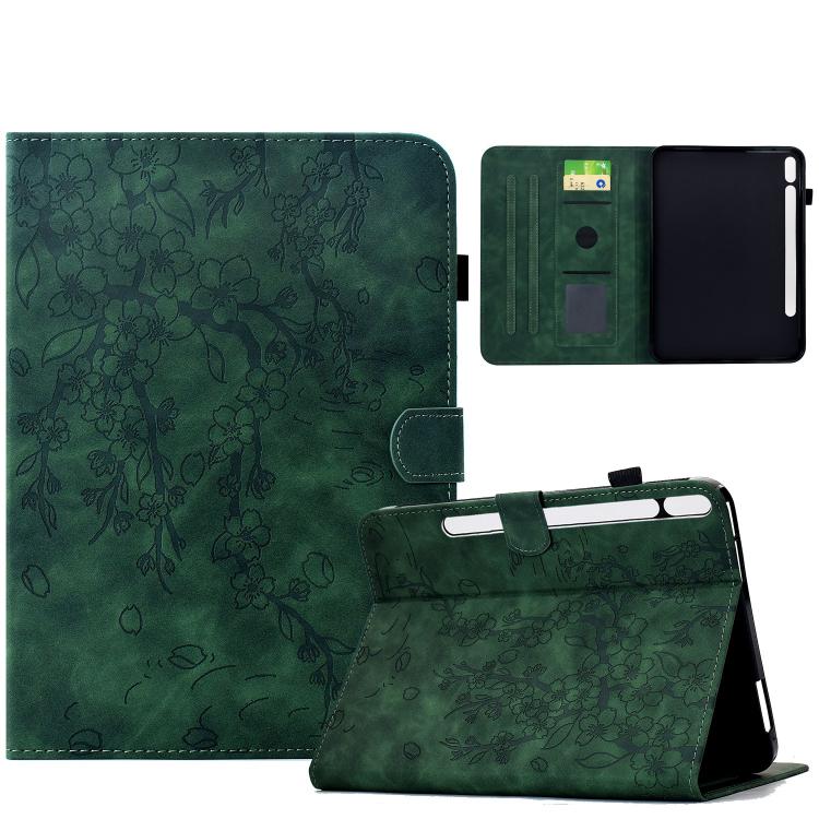 For Samsung Galaxy Tab S10 FE / S9 FE Plum Blossom Embossed Smart Leather Tablet Case(Green)