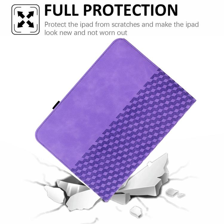 For Samsung Galaxy Tab S10 FE / S9 Rotatable Rhombus Embossed Smart Leather Tablet Case(Purple)