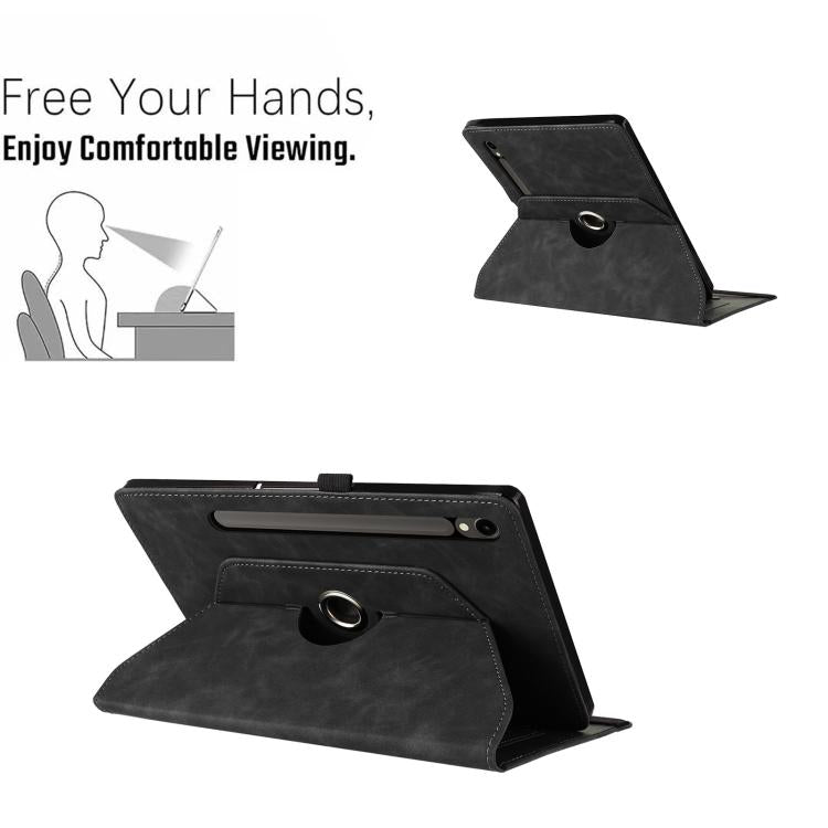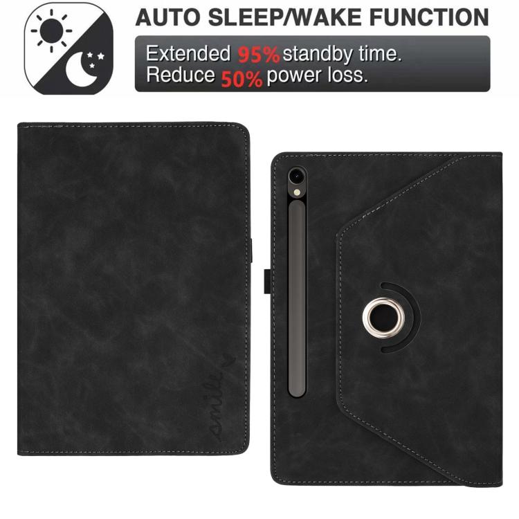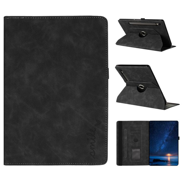For Samsung Galaxy Tab S10 FE / S9 Smile Embossed Rotation Holder Leather Smart Tablet Case(Black)