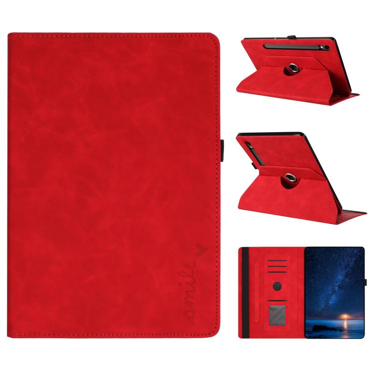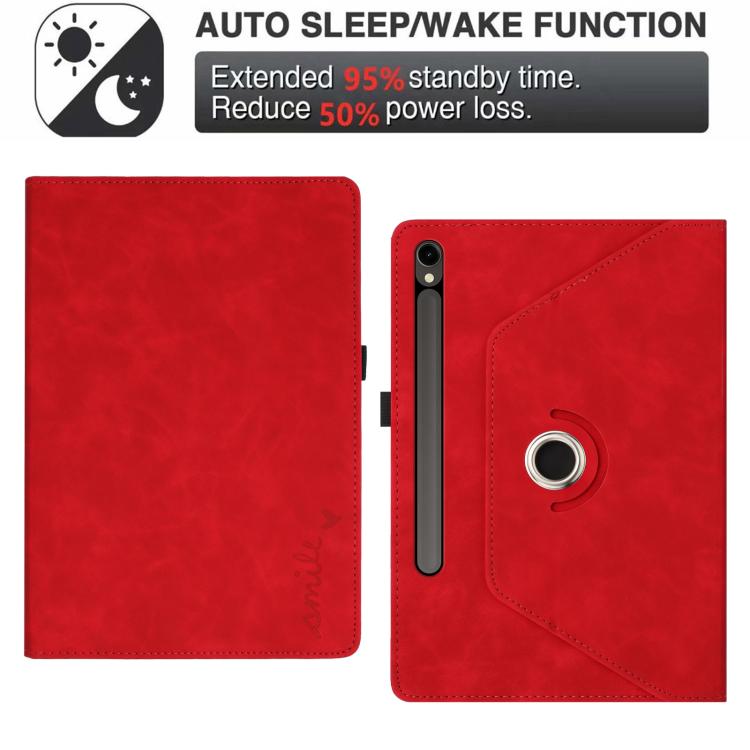 For Samsung Galaxy Tab S10 FE / S9 Smile Embossed Rotation Holder Leather Smart Tablet Case(Red)