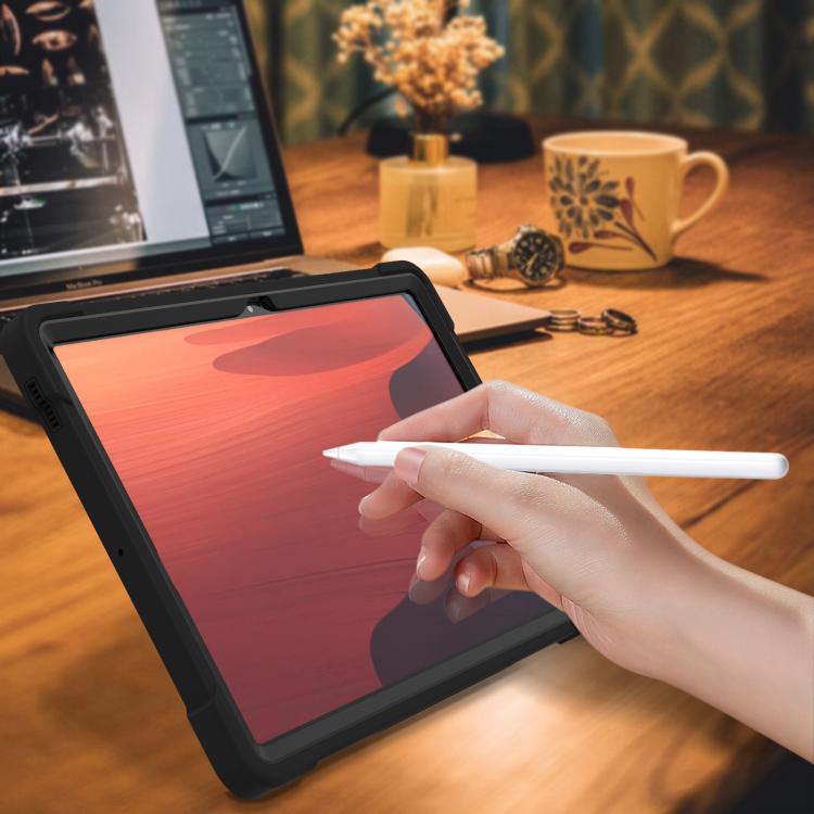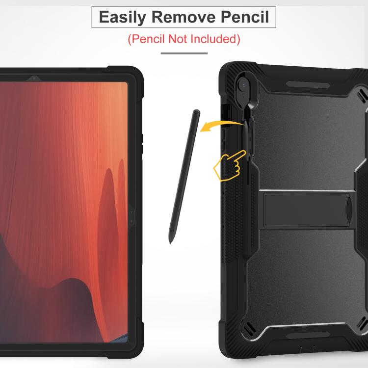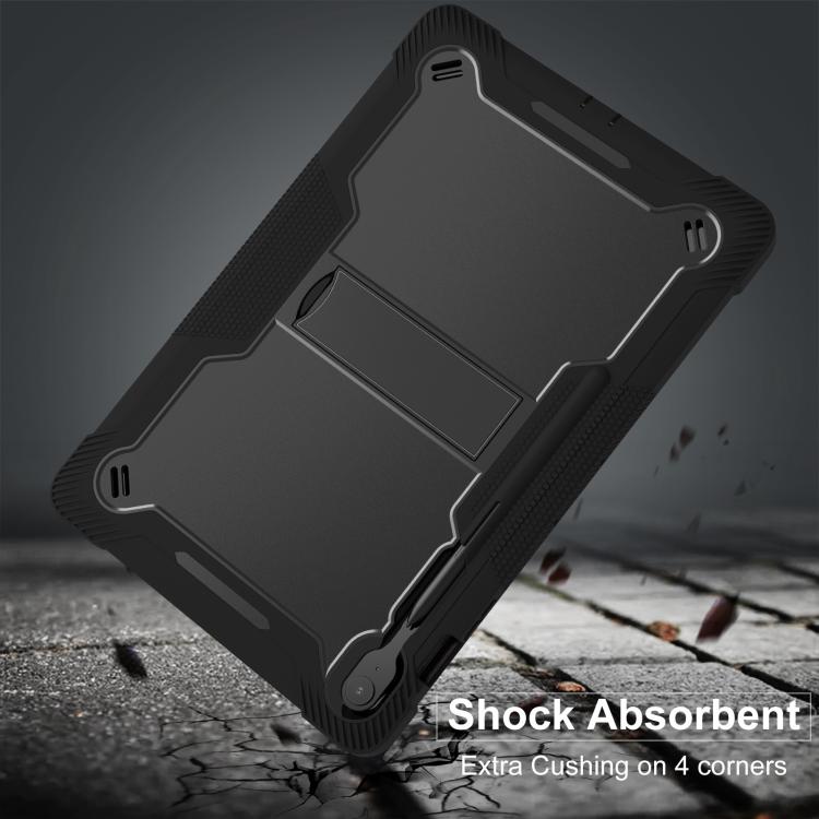 For Samsung Galaxy Tab S10 FE+ Shockproof Silicone Hybrid PC Tablet Case with Holder(Black)