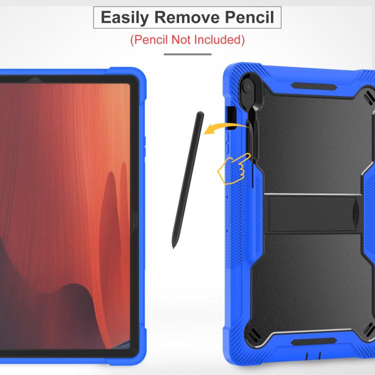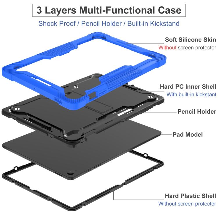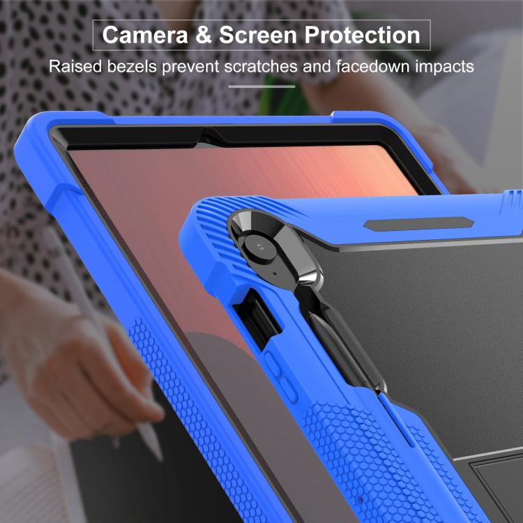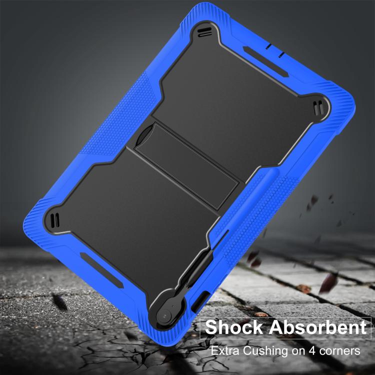 For Samsung Galaxy Tab S10 FE+ Shockproof Silicone Hybrid PC Tablet Case with Holder(Black Dark Blue)