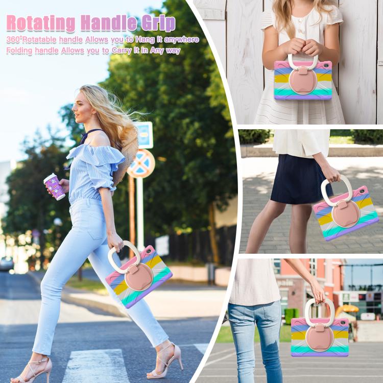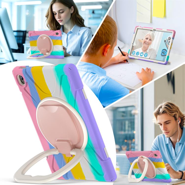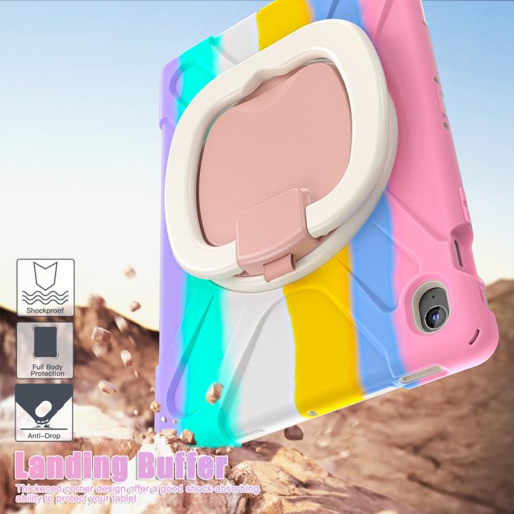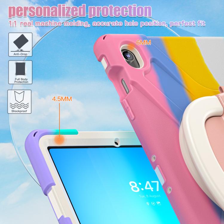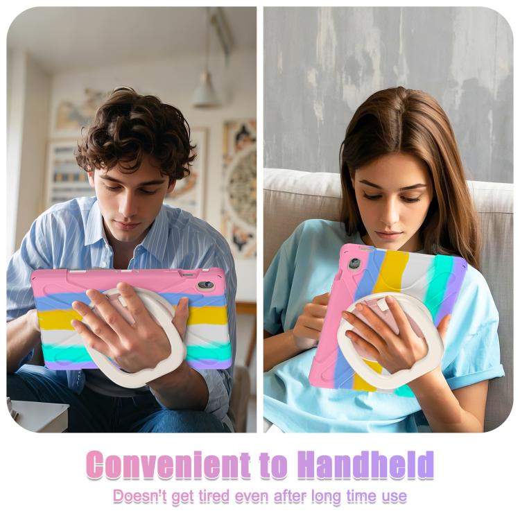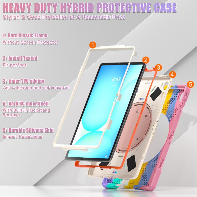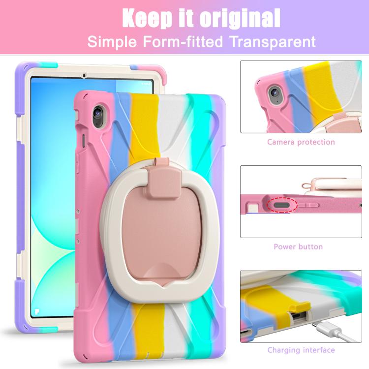 For Samsung Galaxy Tab S10 FE+ Silicone Hybrid PC Tablet Case with Holder & Shoulder Strap(Colorful Pink)