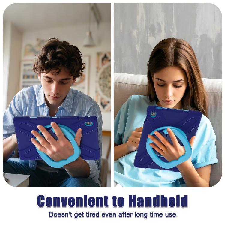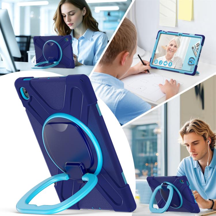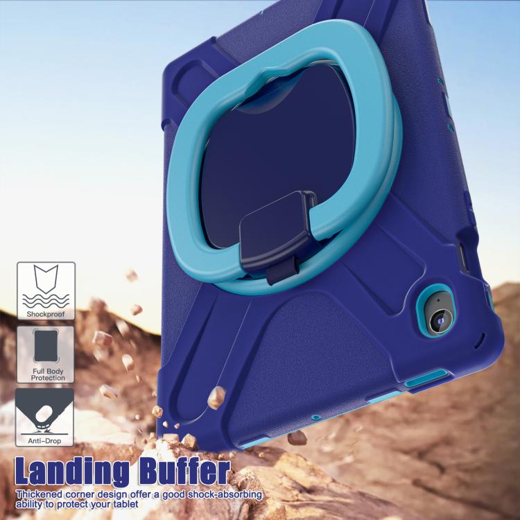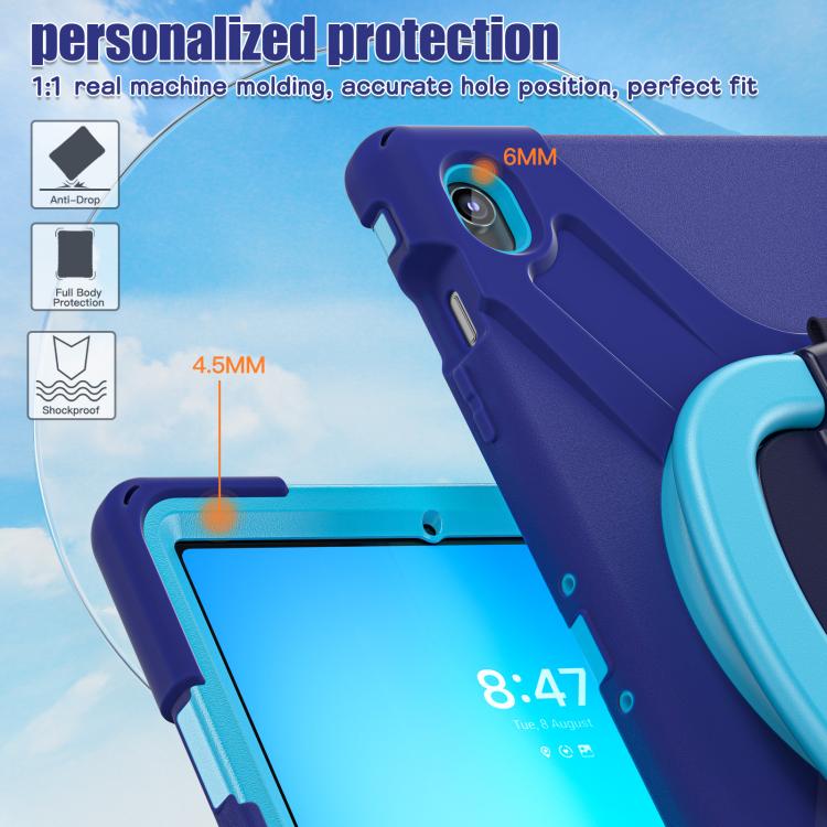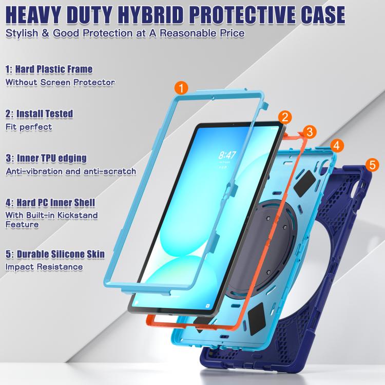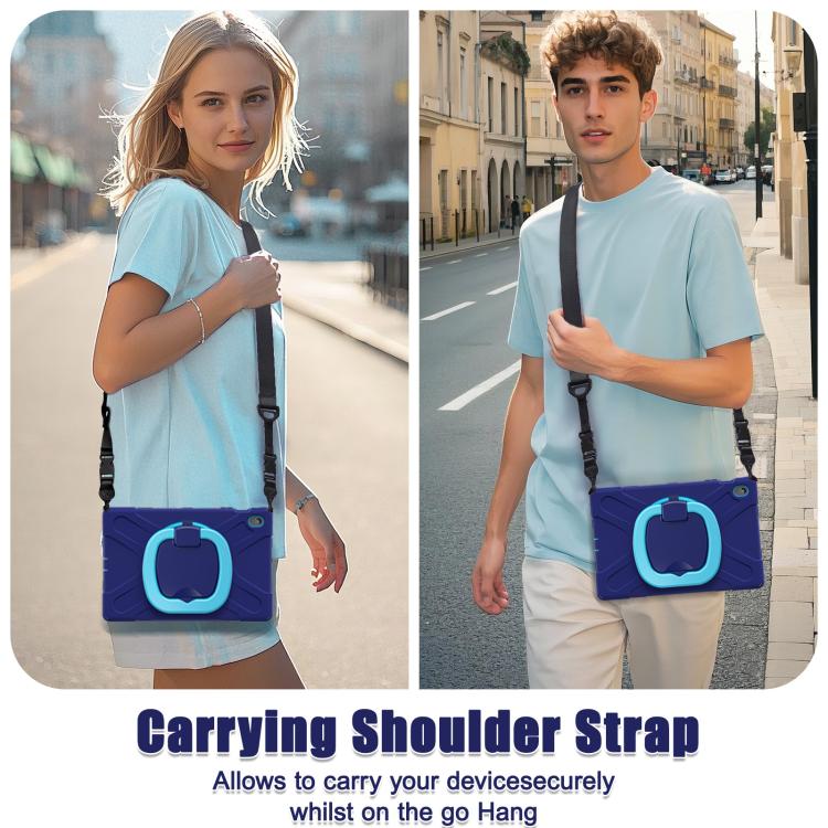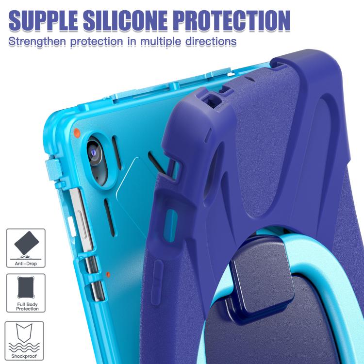 For Samsung Galaxy Tab S10 FE+ Silicone Hybrid PC Tablet Case with Holder & Shoulder Strap(Navy Blue Blue)
