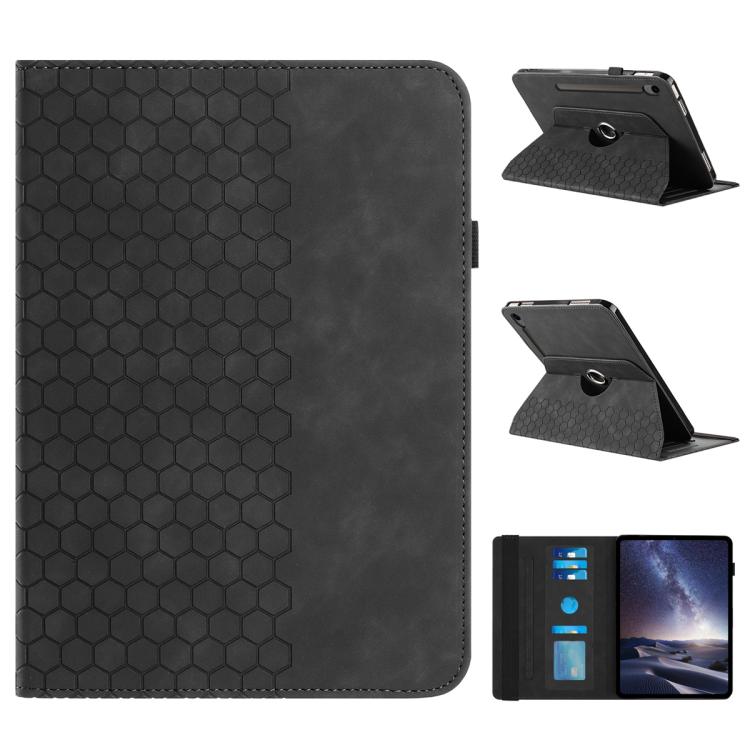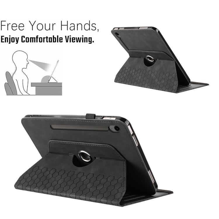 For Samsung Galaxy Tab S10 FE / Tab S10 FE+ Rotatable Honeycomb Embossed Smart Leather Tablet Case(Black)