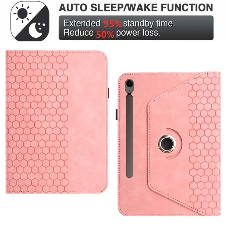 For Samsung Galaxy Tab S10 FE / Tab S10 FE+ Rotatable Honeycomb Embossed Smart Leather Tablet Case(Pink)