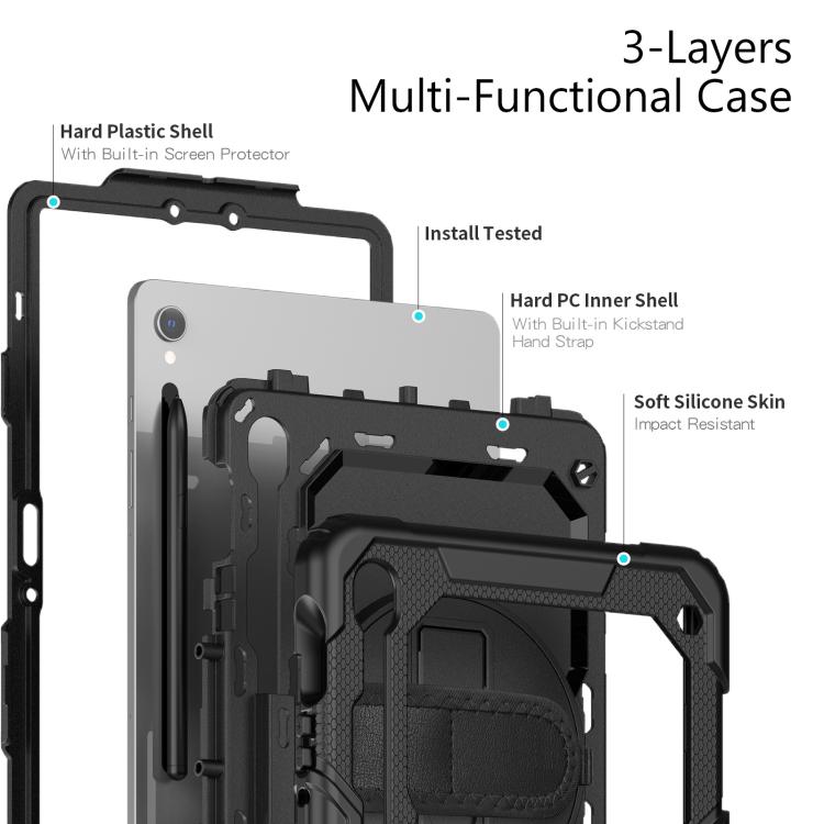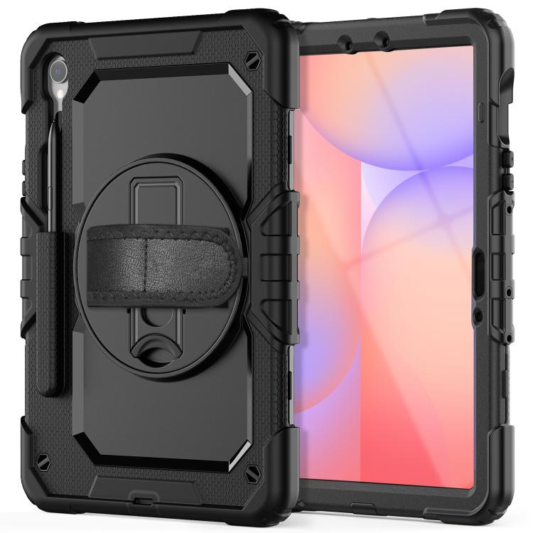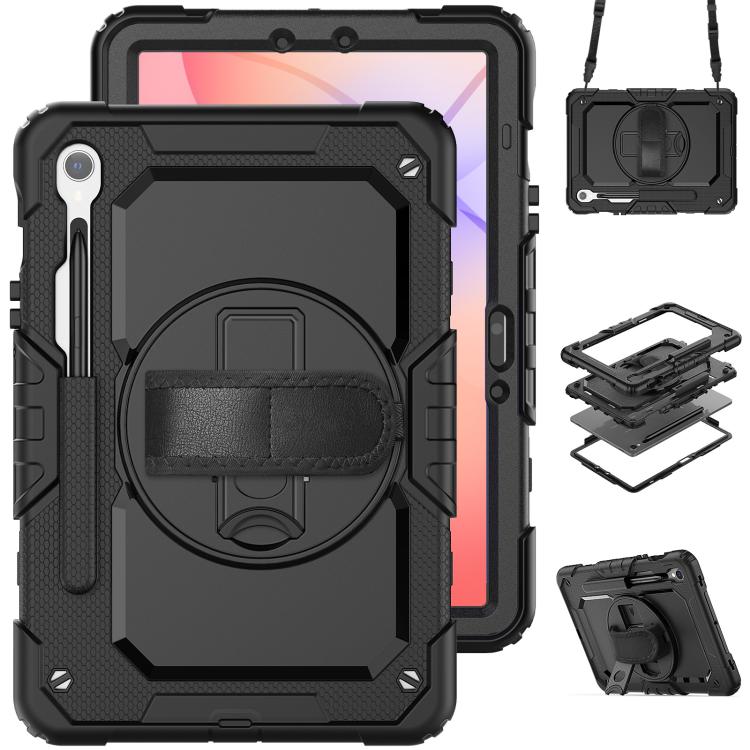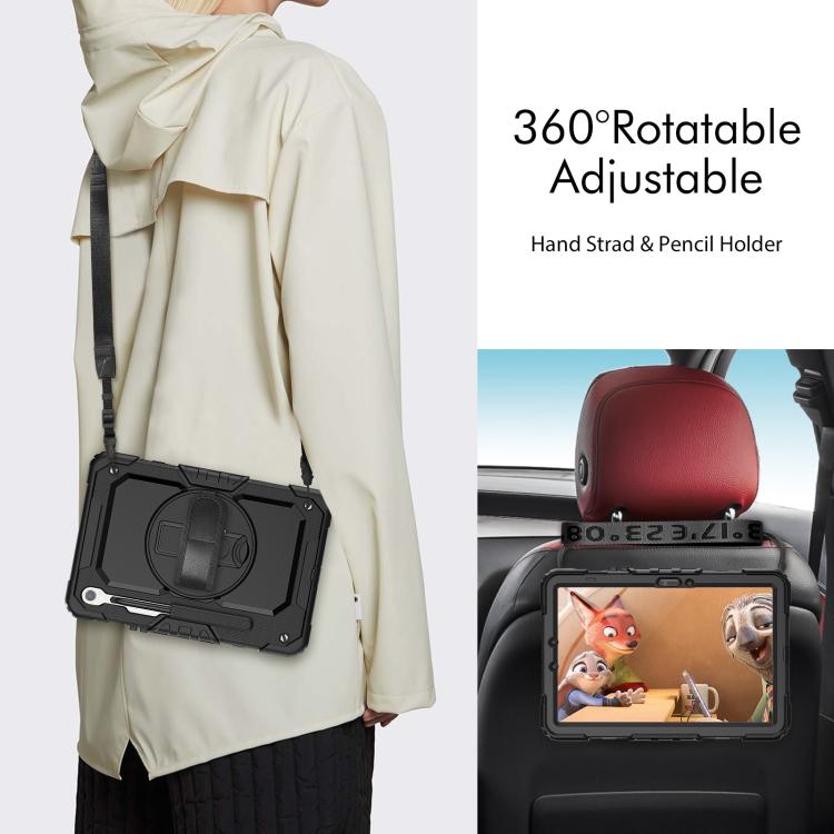 For Samsung Galaxy Tab S10 Lite / S10 FE Silicone Hybrid PC Tablet Case with Shoulder Strap(Black)