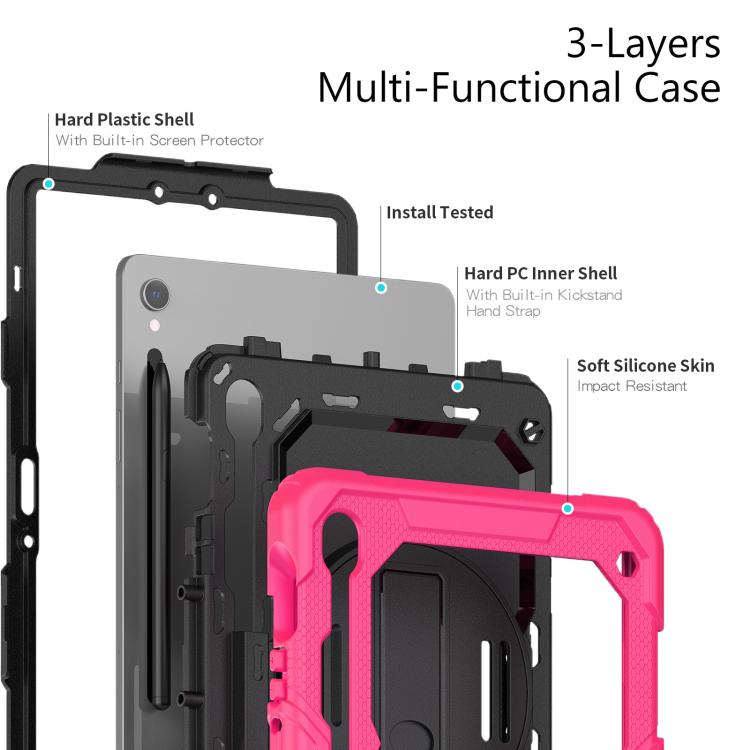 For Samsung Galaxy Tab S10 Lite / S10 FE Silicone Hybrid PC Tablet Case with Shoulder Strap(Rose Red)