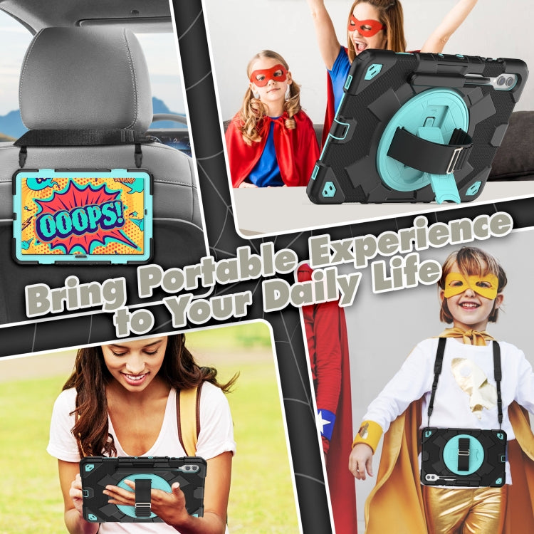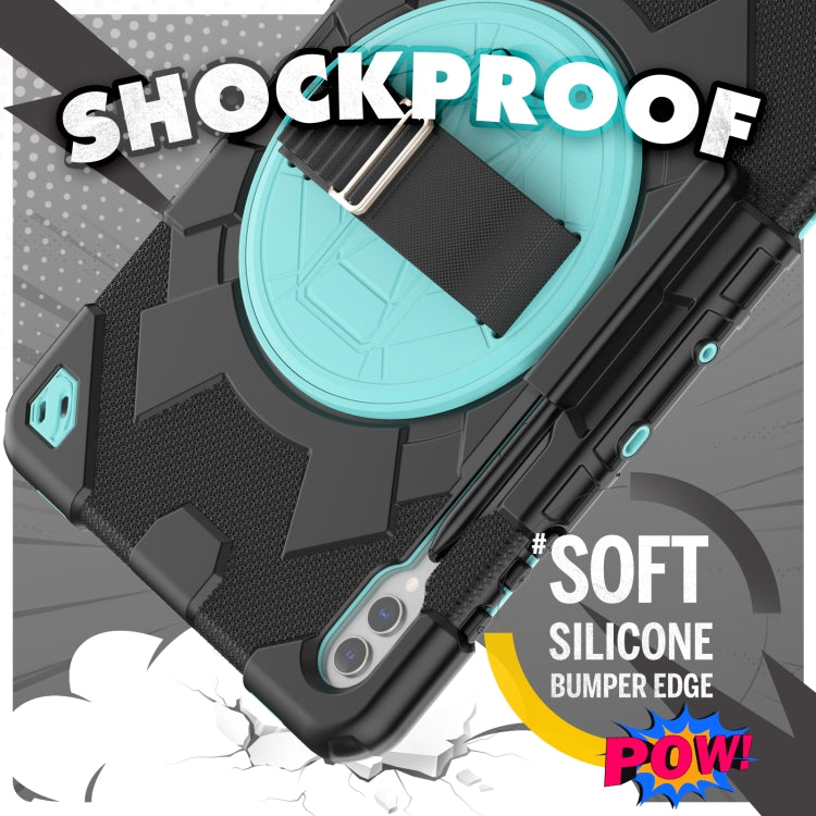 For Samsung Galaxy Tab S10+ / S9+ / S9 FE+ Spider Hand Grip Turntable Stand Tablet Case(Black Light Blue)