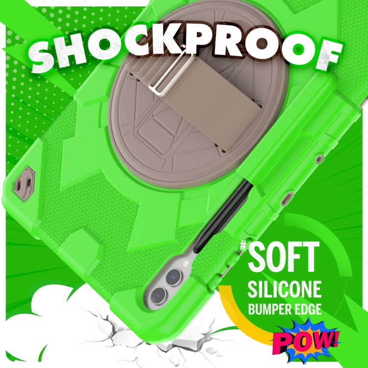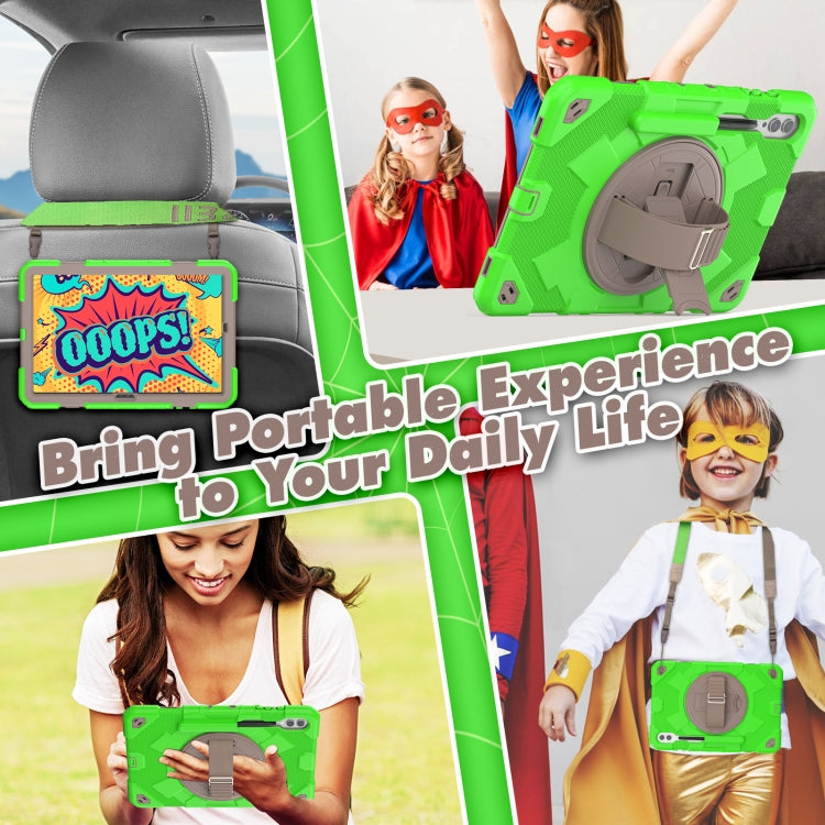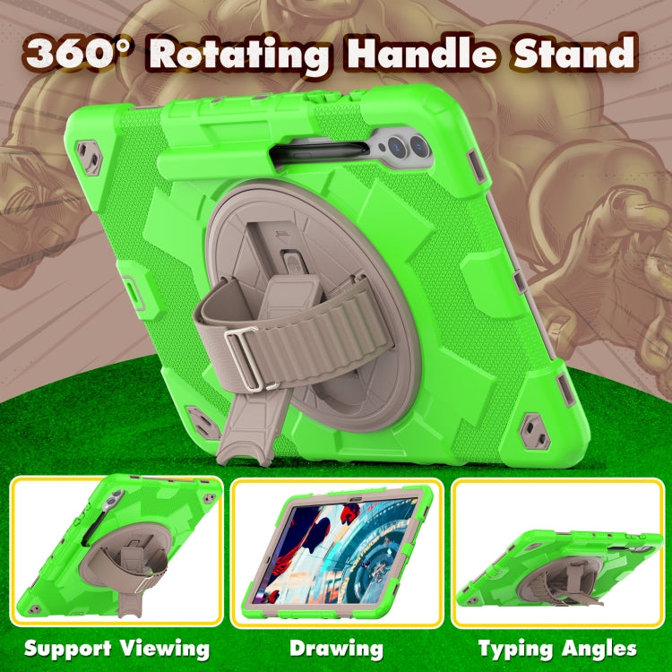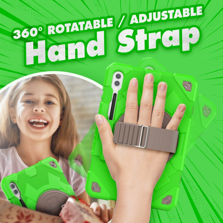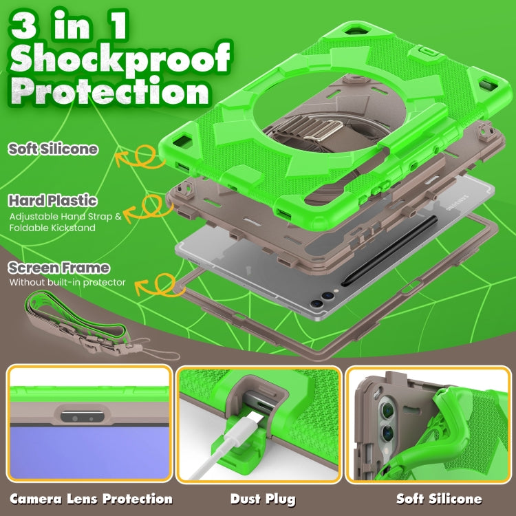 For Samsung Galaxy Tab S10+ / S9+ / S9 FE+ Spider Hand Grip Turntable Stand Tablet Case(Coffee Green)