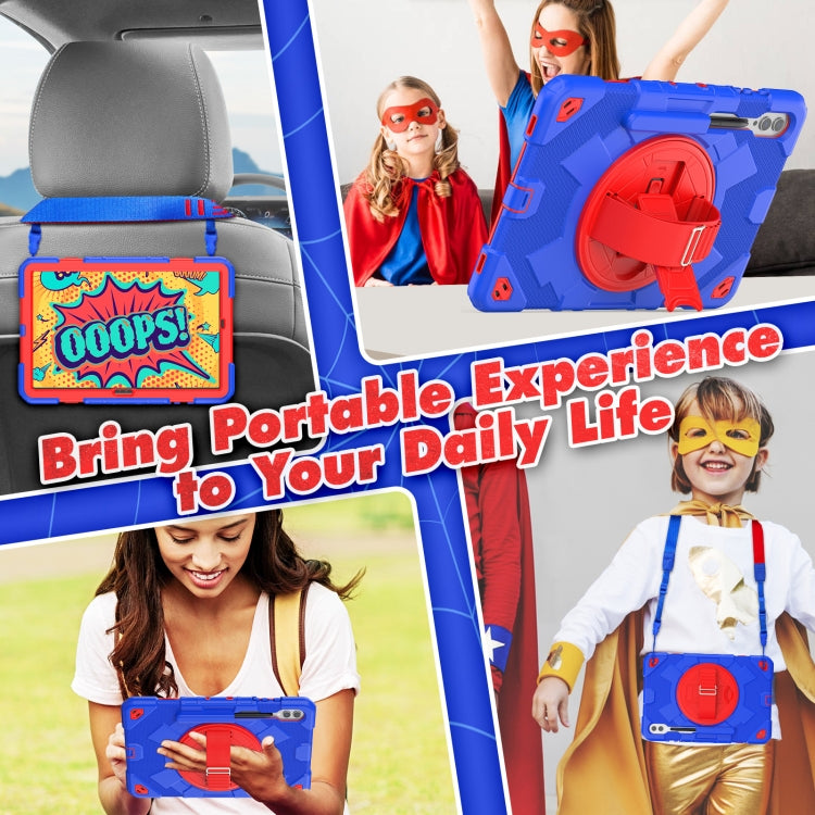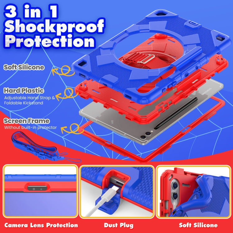 For Samsung Galaxy Tab S10+ / S9+ / S9 FE+ Spider Hand Grip Turntable Stand Tablet Case(Red Blue)